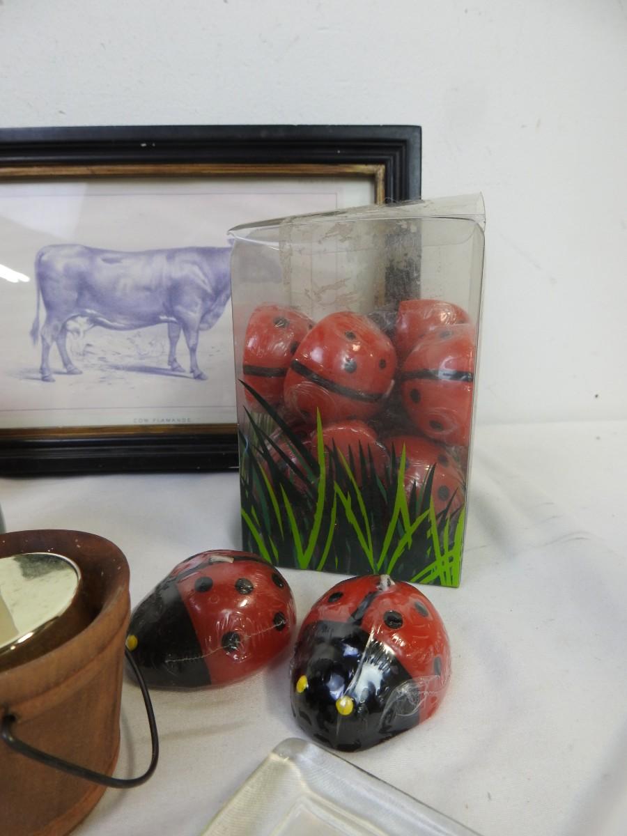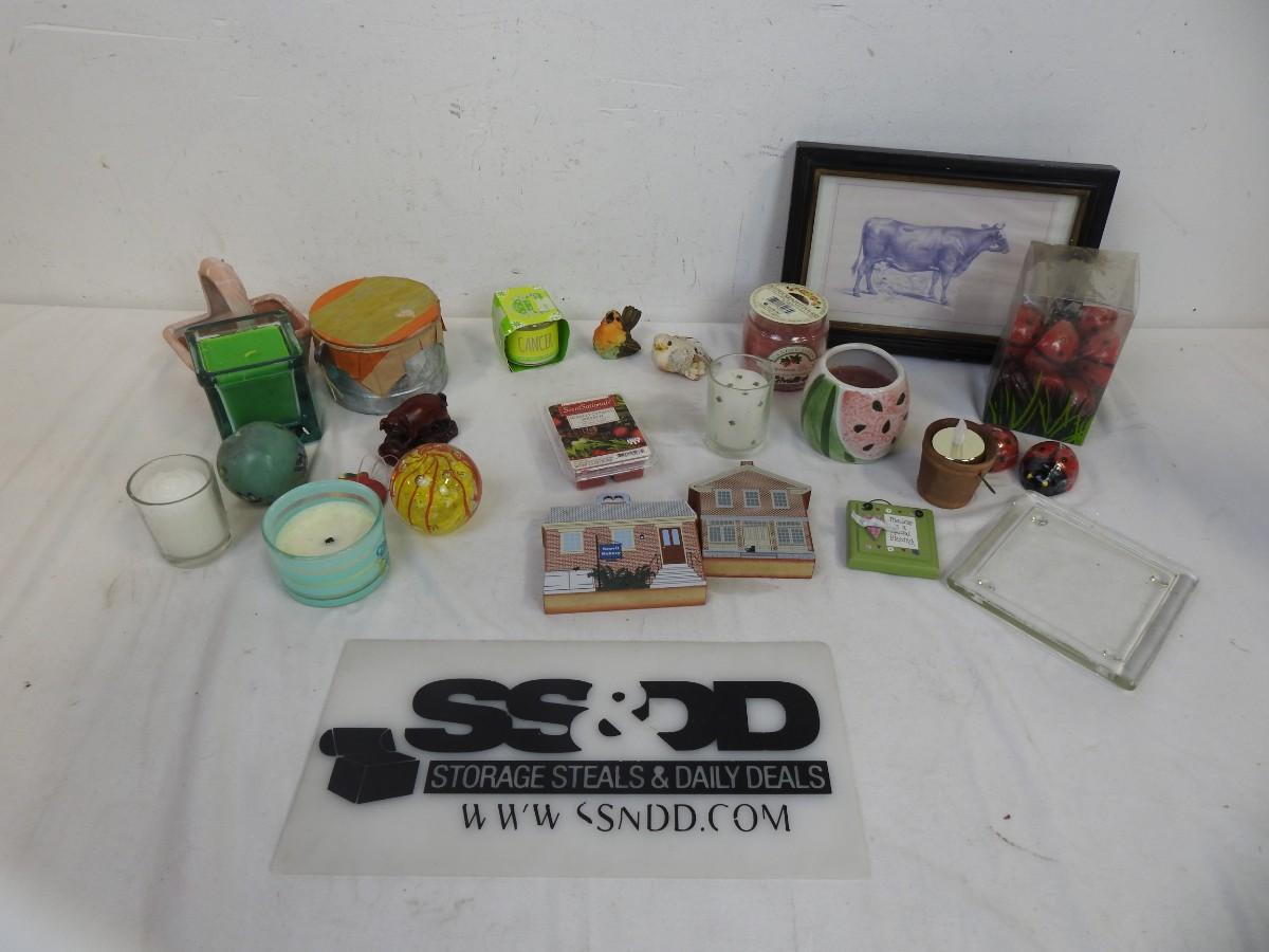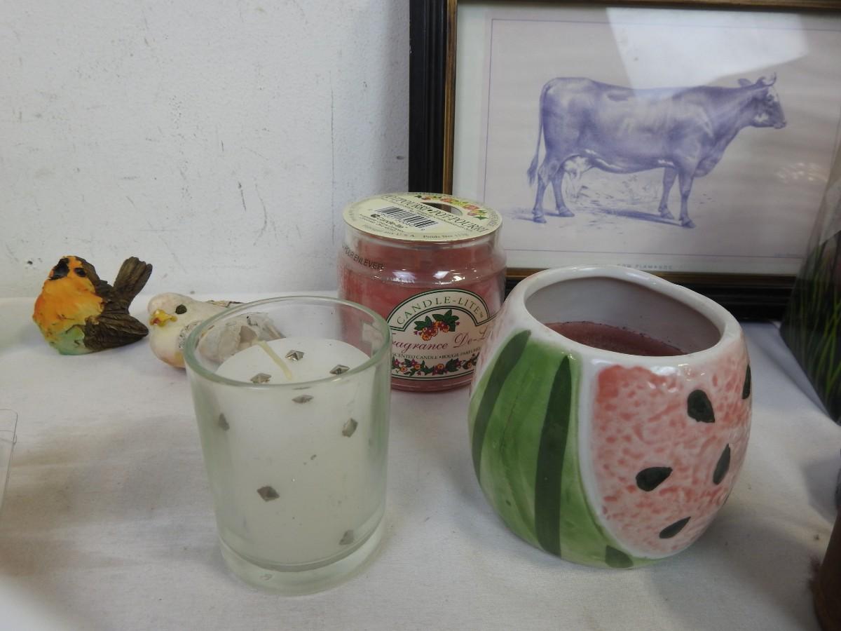 Candle and Décor Lot: Ladybugs, Watermelon, Cow Frame, Birds, Ceramic and More