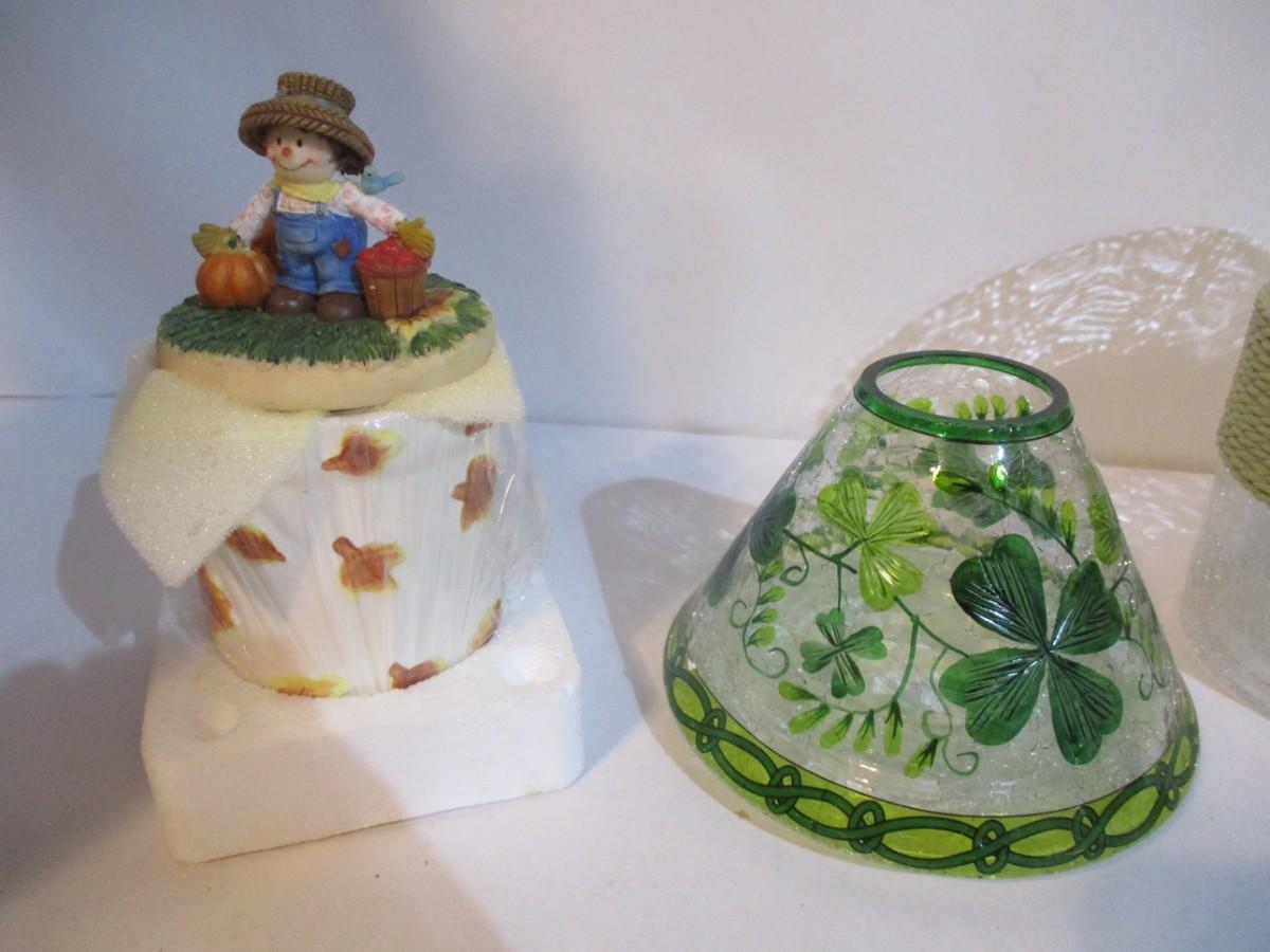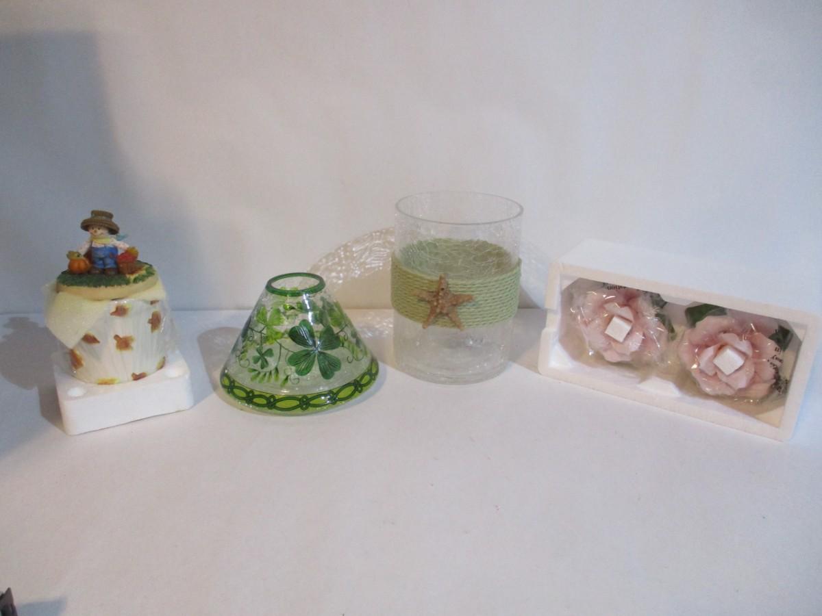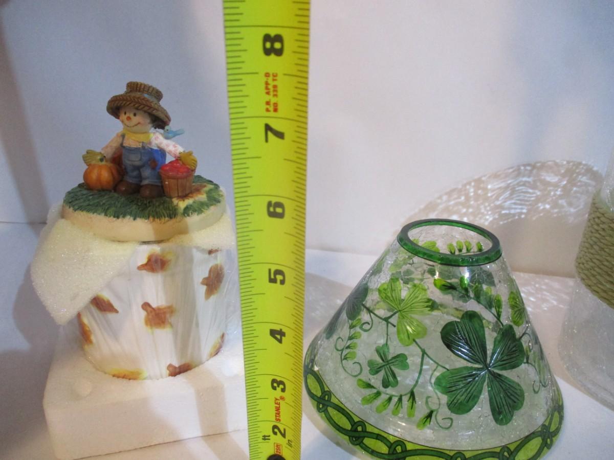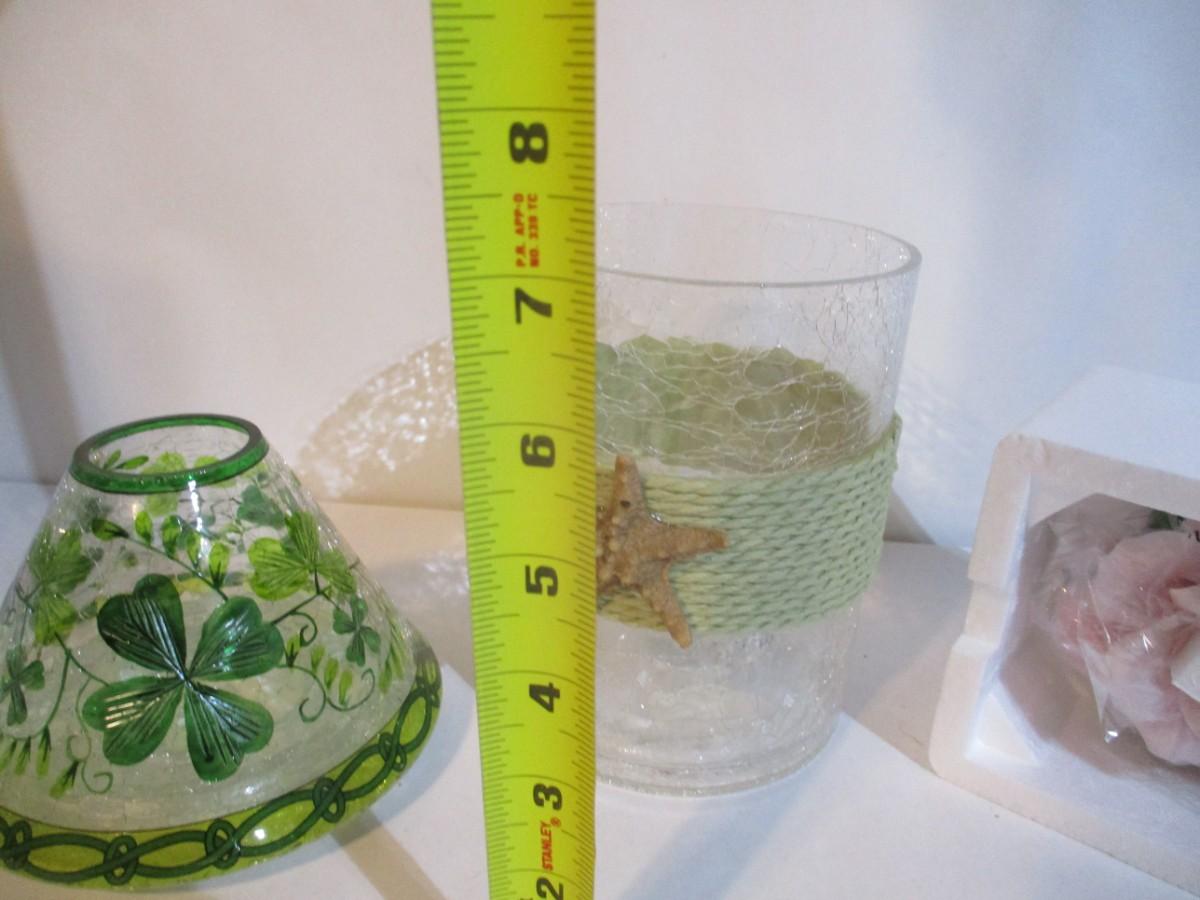 4 - Yankee Candle Crackle Glass Jar Shade Four Leaf Clover Shamrocks Rose Blossom Taper Holders Country Harvest Candle Star Fish Crackle Candle Holder