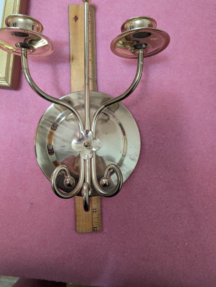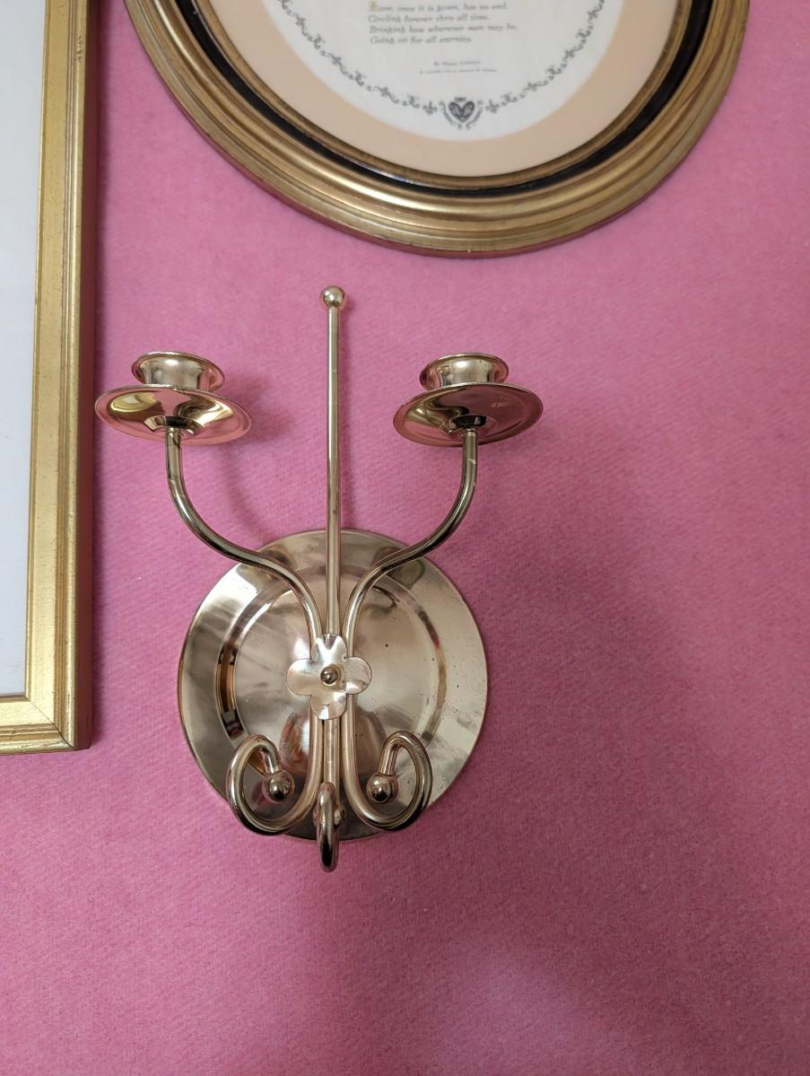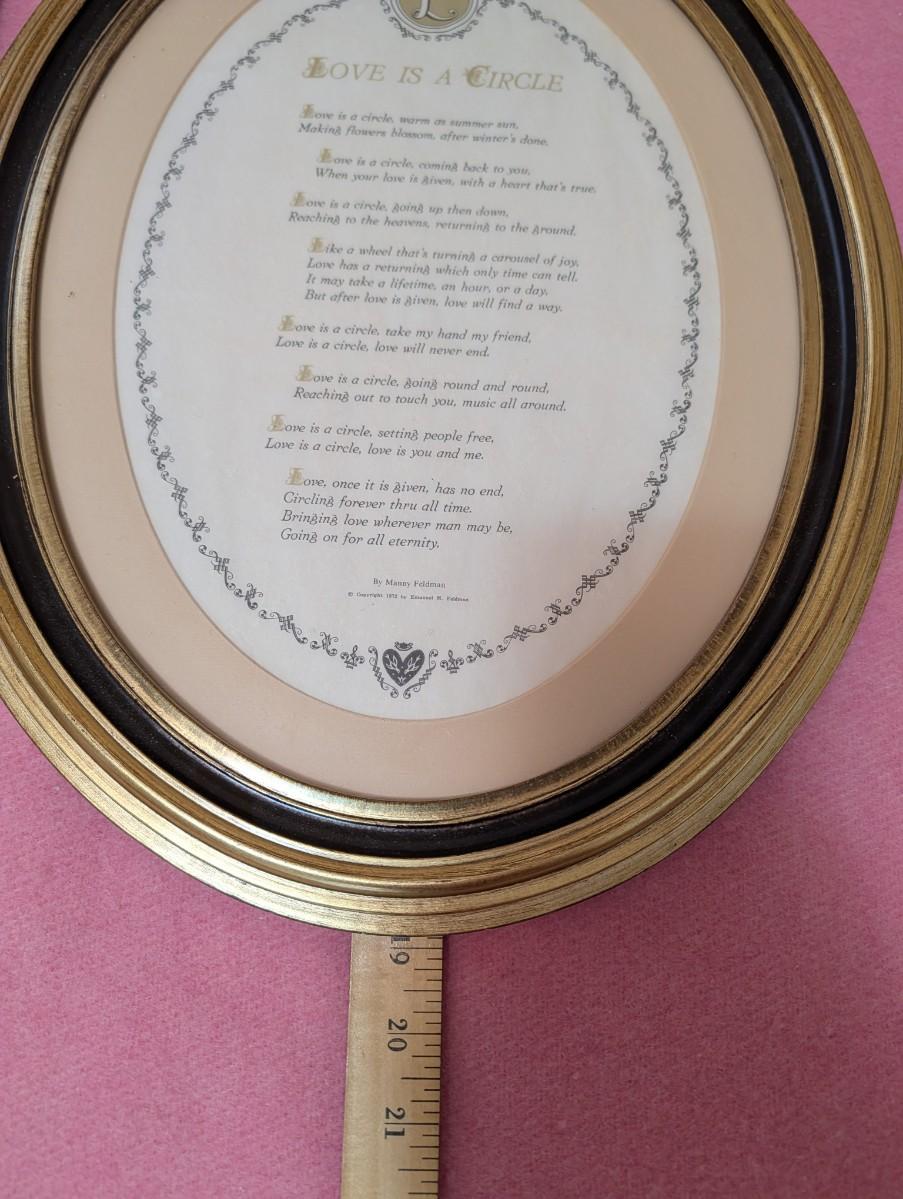 Pretty outdoor scene picture, framed "love is a circle" poem, gold tone wall hanging candle holder.