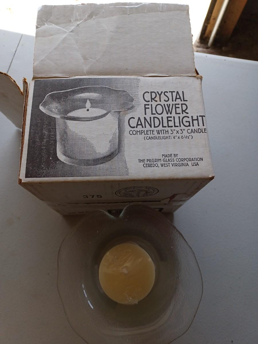 Vintage Pilgrim Class Co. Frosted Clear Crystal Glass Flower Candle Holder NEW