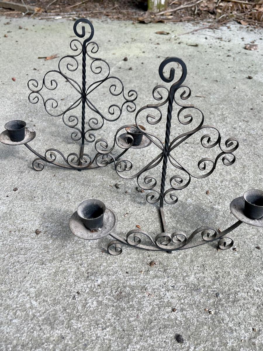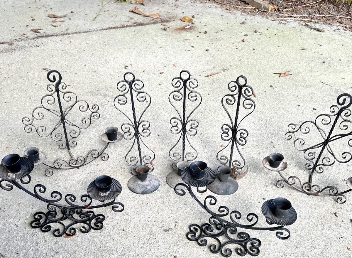 Great grouping of metal candle holder wall hangers.