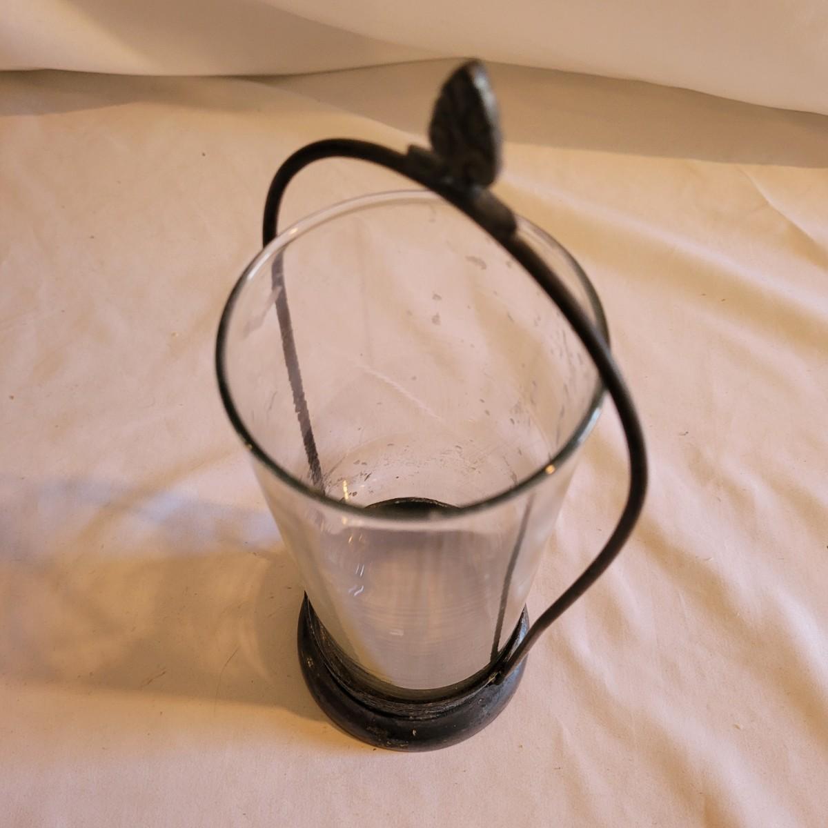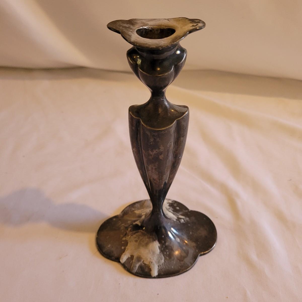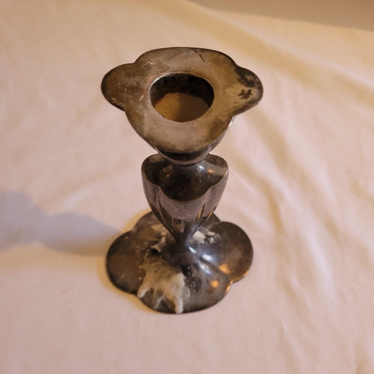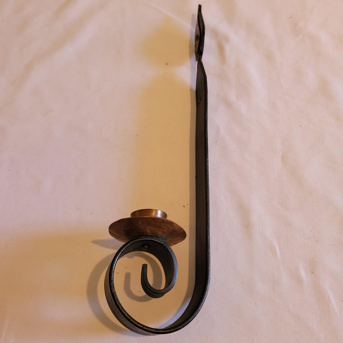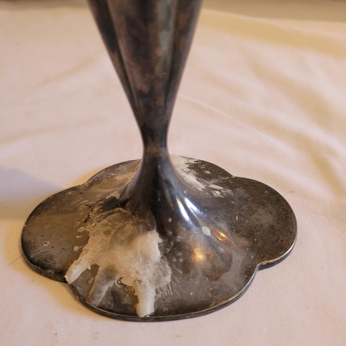 This lot includes nine candle holders. Some are matching and some are individual. There is one set of two and another set of three matching. All holders are made from metal with one featuring a glass wind protector. Two of the holders are wall mounted sconces. Most of the holders have wax residue on them. The tallest holders measure 4" x 4" x 10"H.