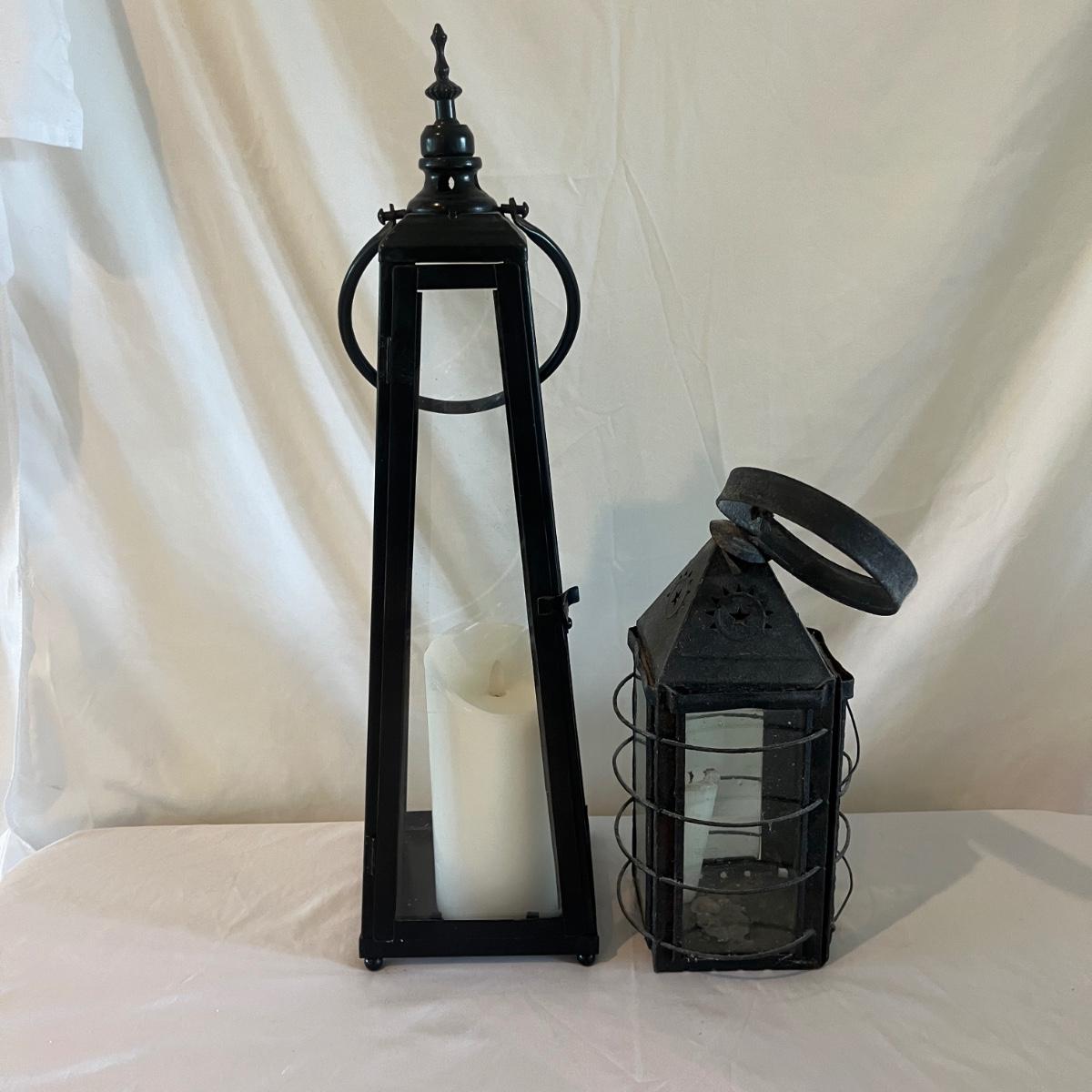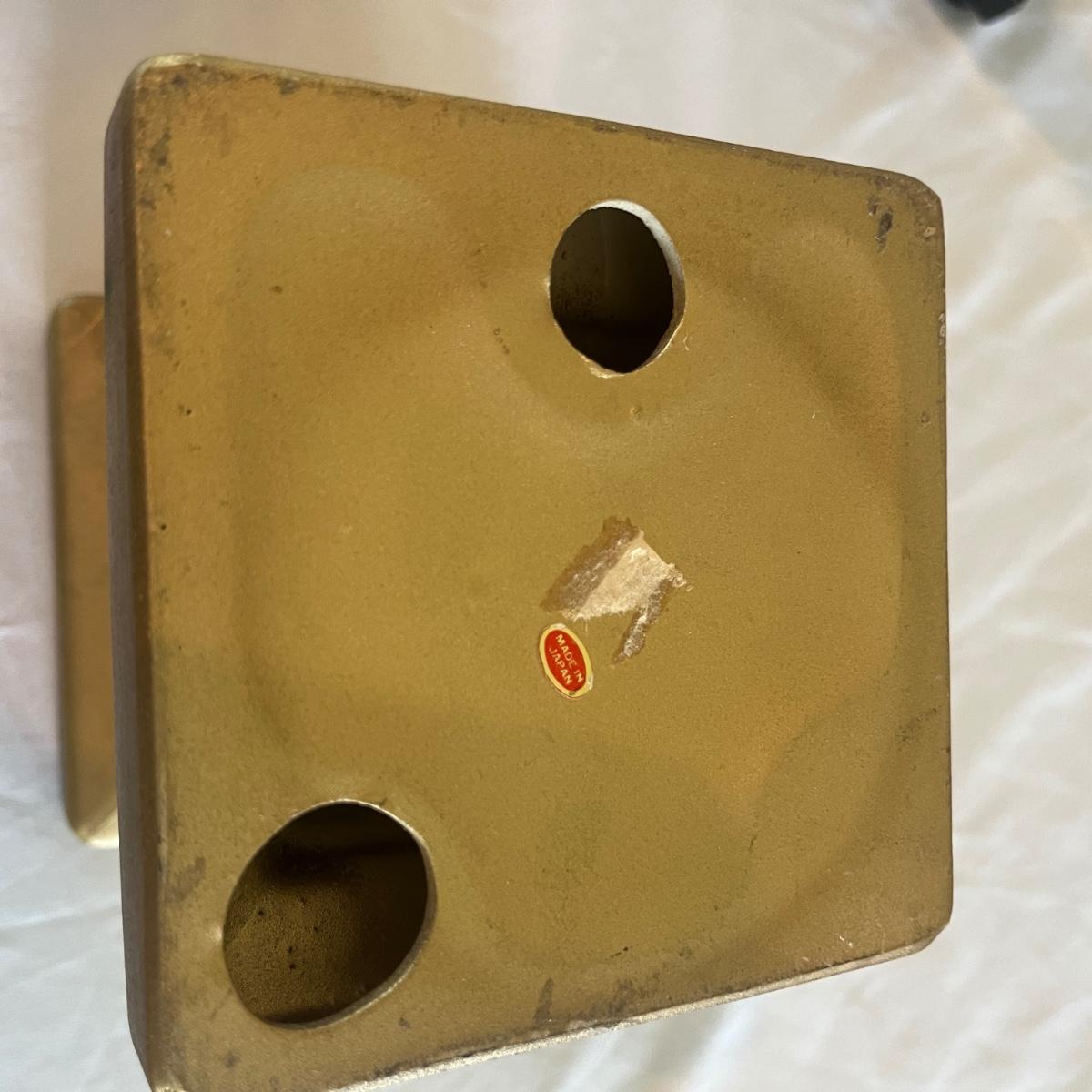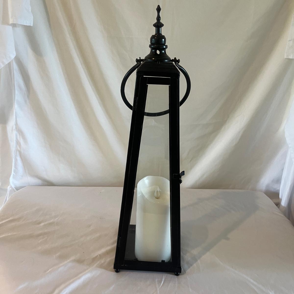 Lot includes four battery powered candles, two metal and glass candleholders and three resin candle stands and one ceramic gold candle stand Tallest piece measures 6” x 6” x 22”H. The battery powered candles could not be tested (C batteries required) but the terminals look clean and functional.