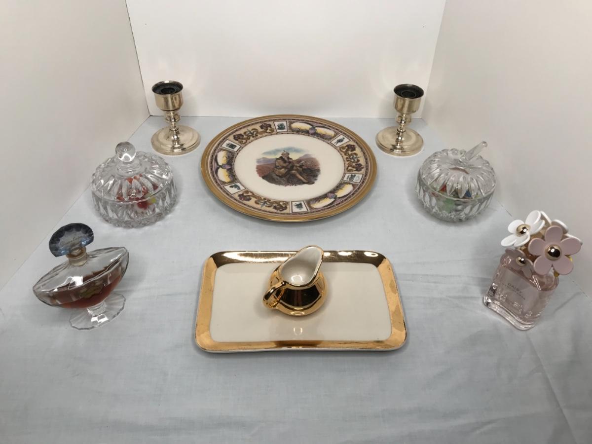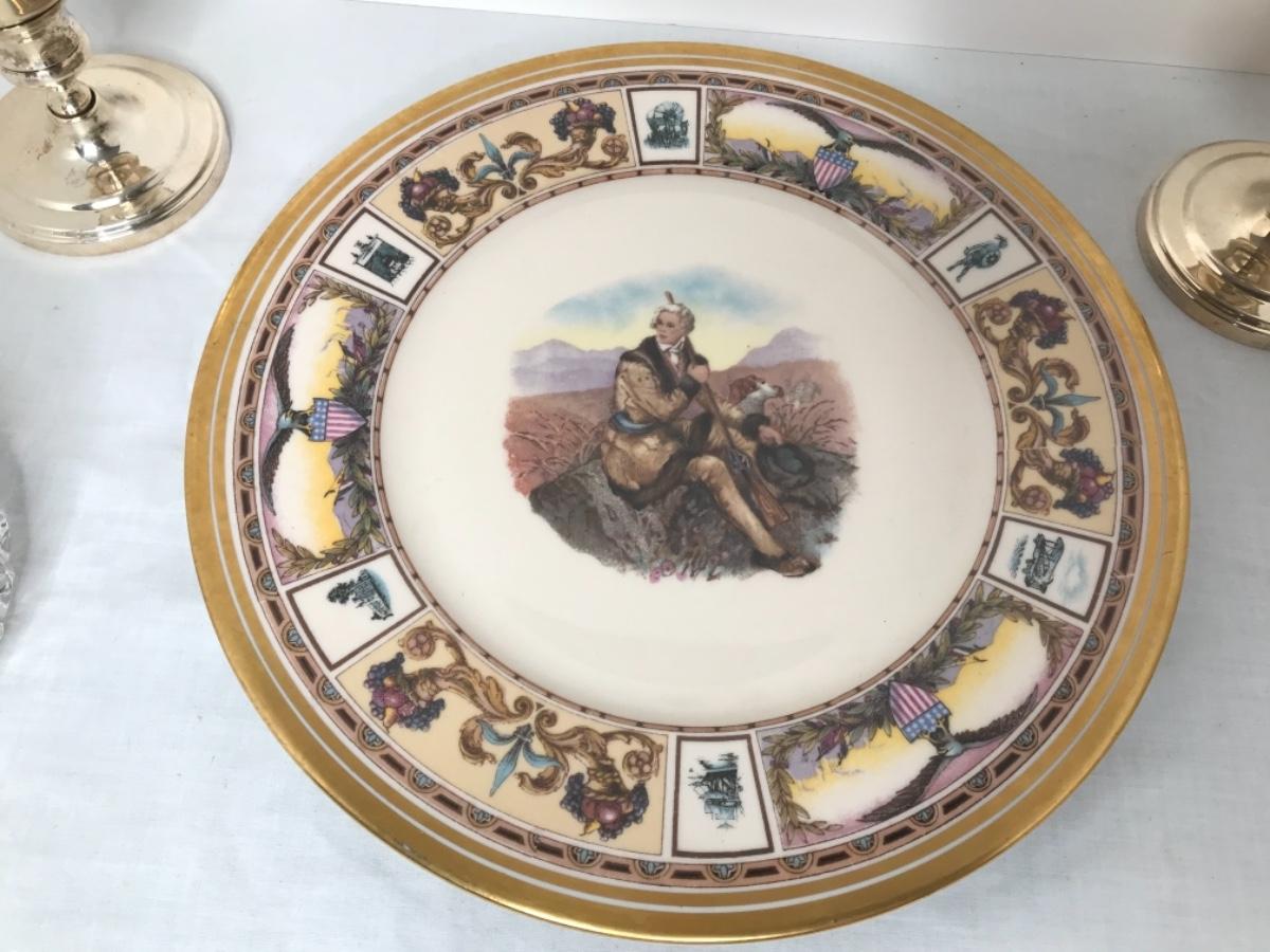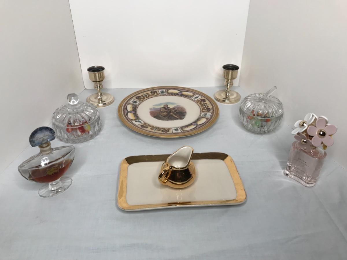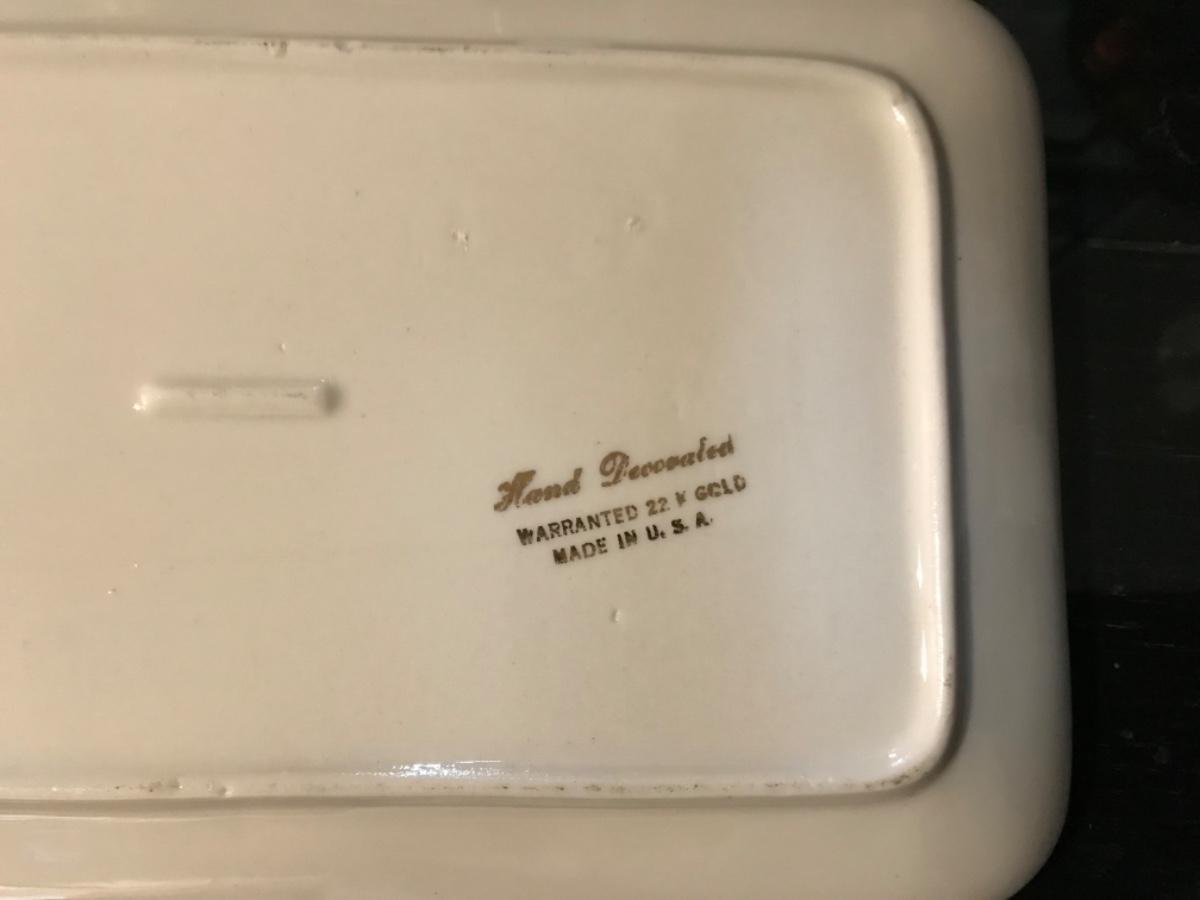 Oblong plate hand decorated with 22 k gold trim and small 22 k gold creamer