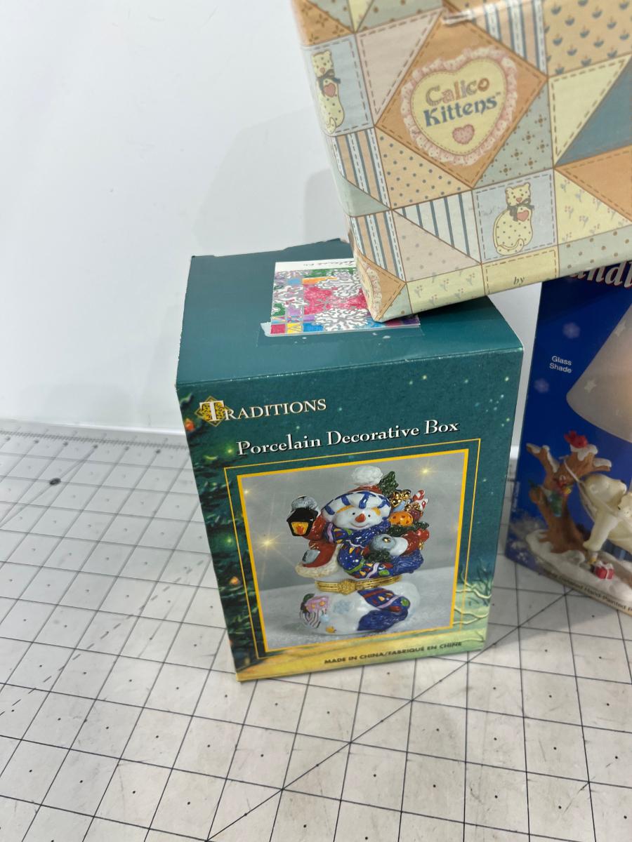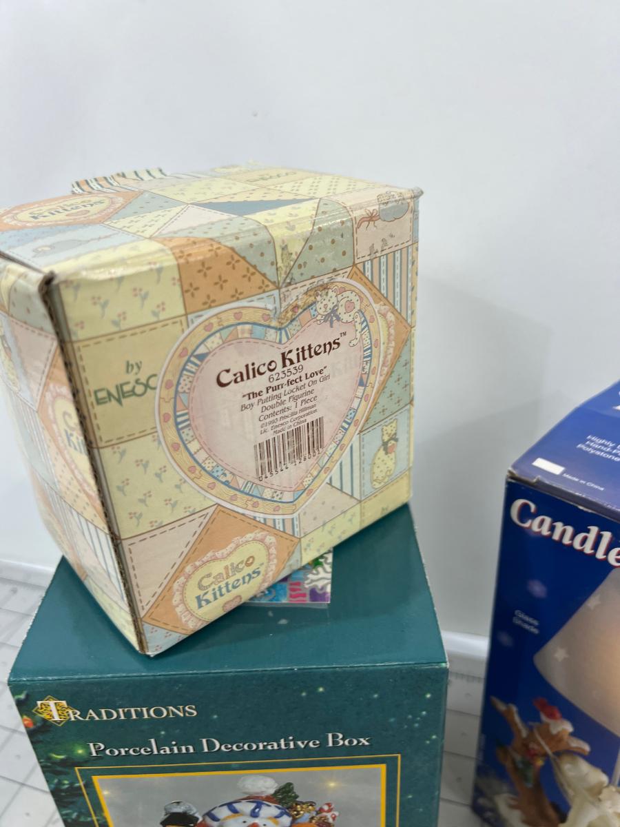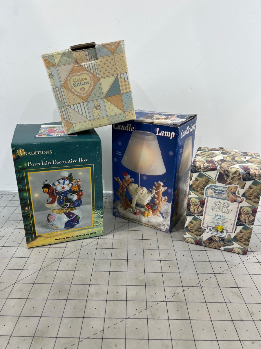 Candle Lamp, Decorative Box, June & Jean Figurine, Calico Kittens All NEW (4)