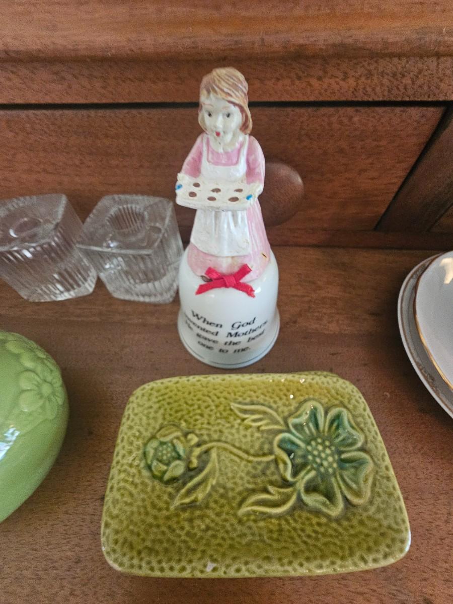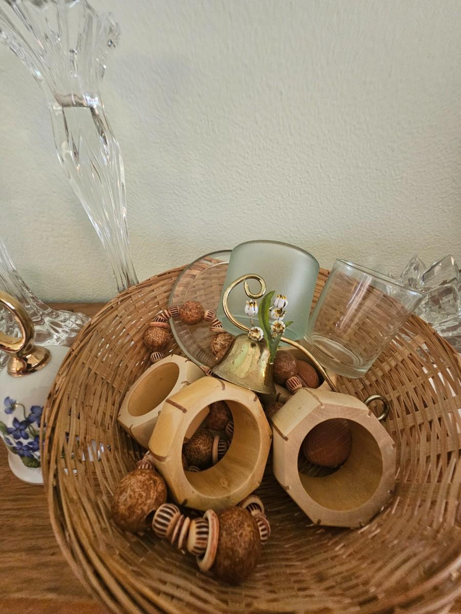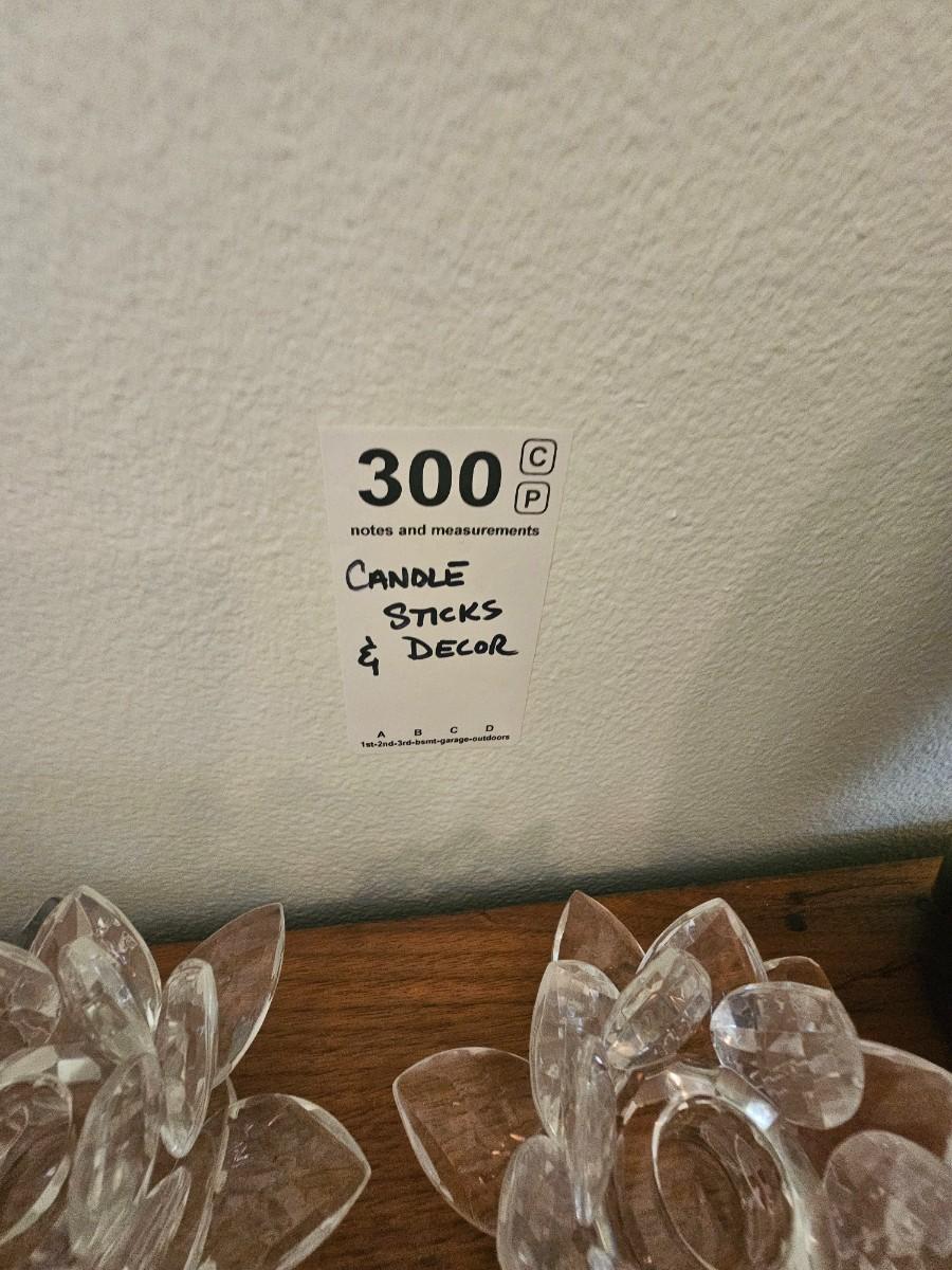 Crystal candlesticks, glass candlesticks, assorted napkin rings, assorted glass pieces and wisdom rock.
