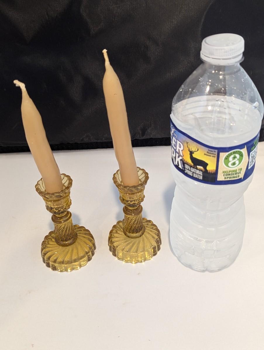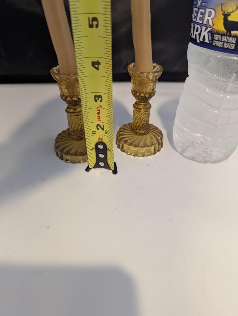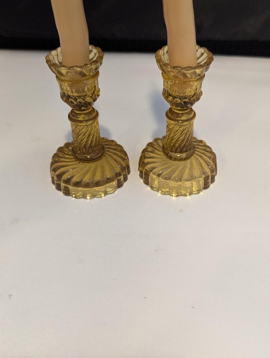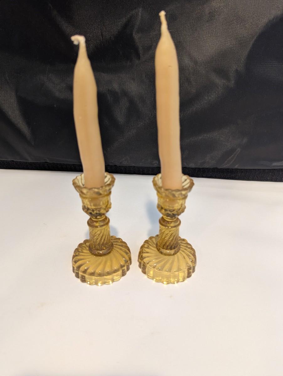 French Amber Style Pressed Glass Candle Sticks (DR)