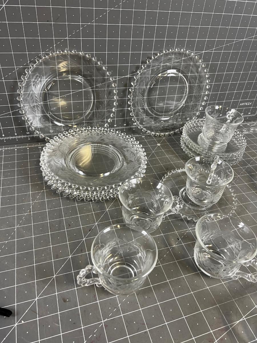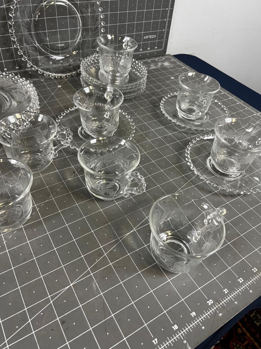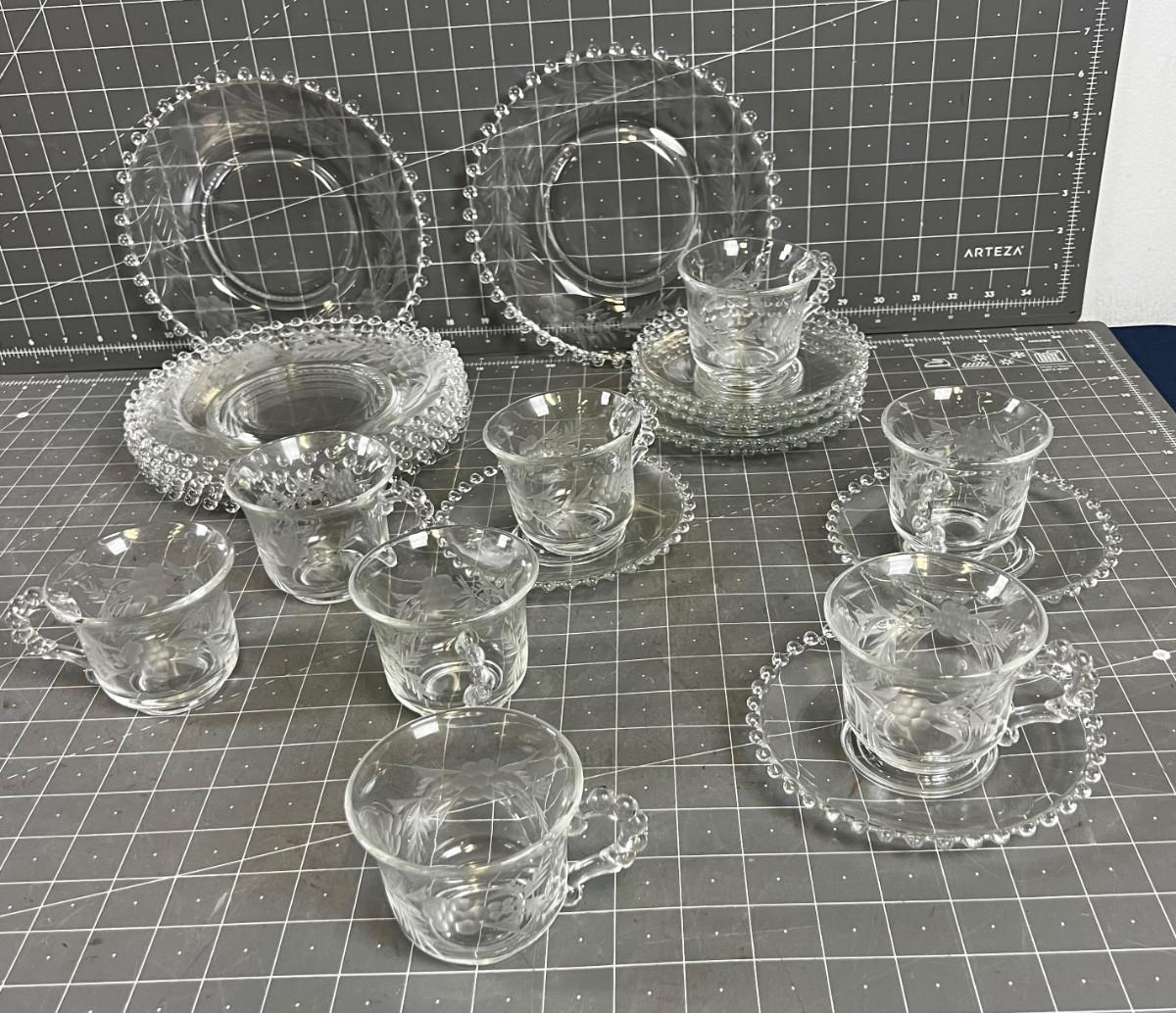 Candle Wick Cups & Saucers (8) Dessert Plates (7)