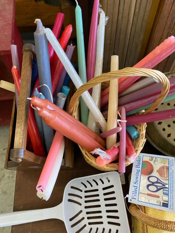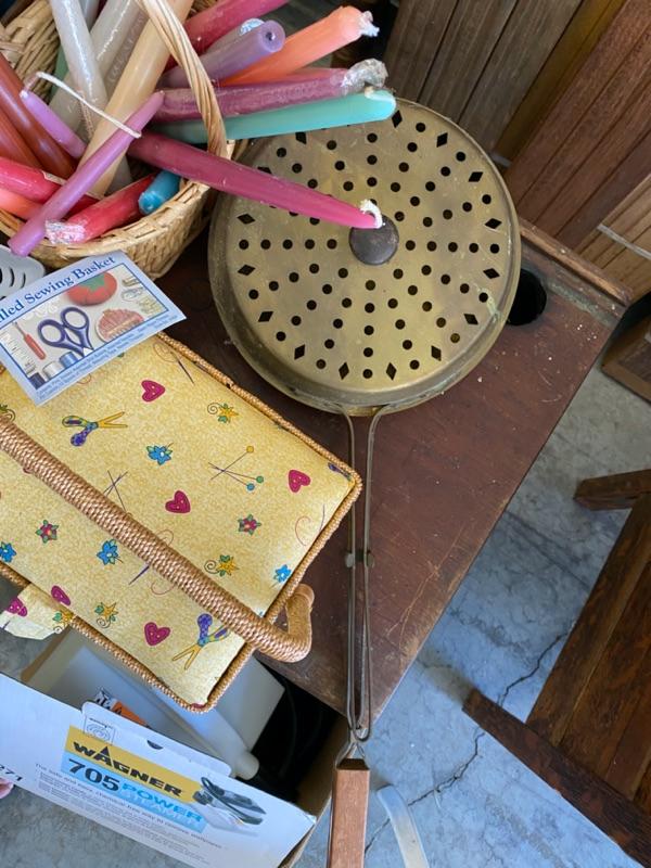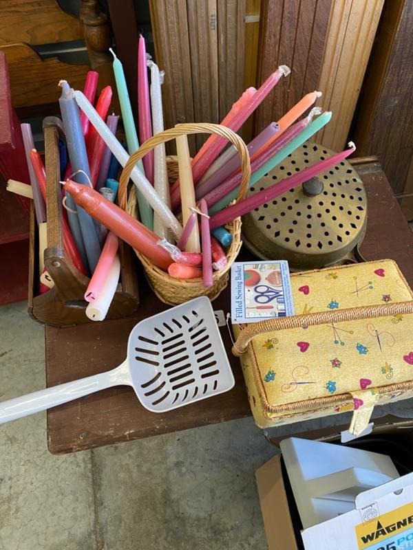 Candles, Antique Bed Warmer, Sewing Box- Lot 272