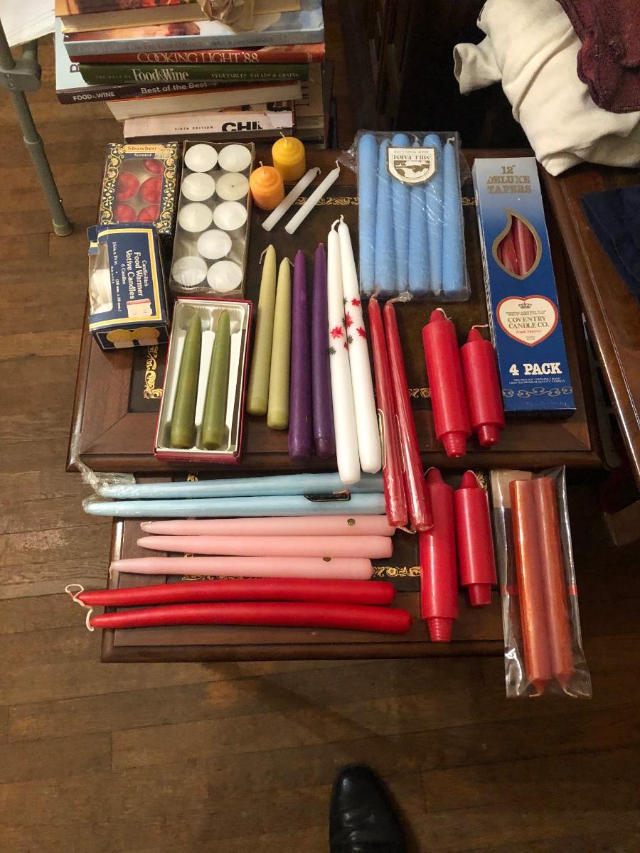 Candles, candle wax hold candles in holder
