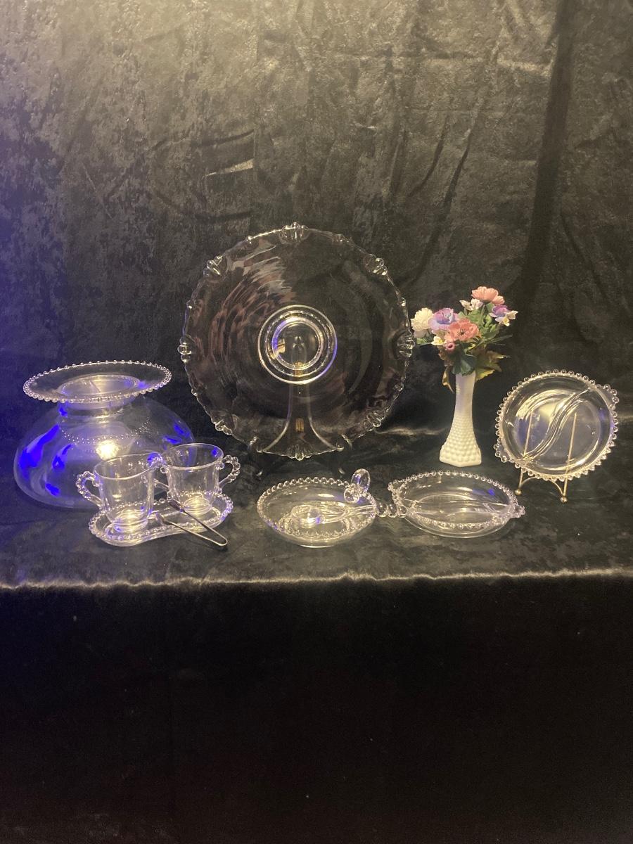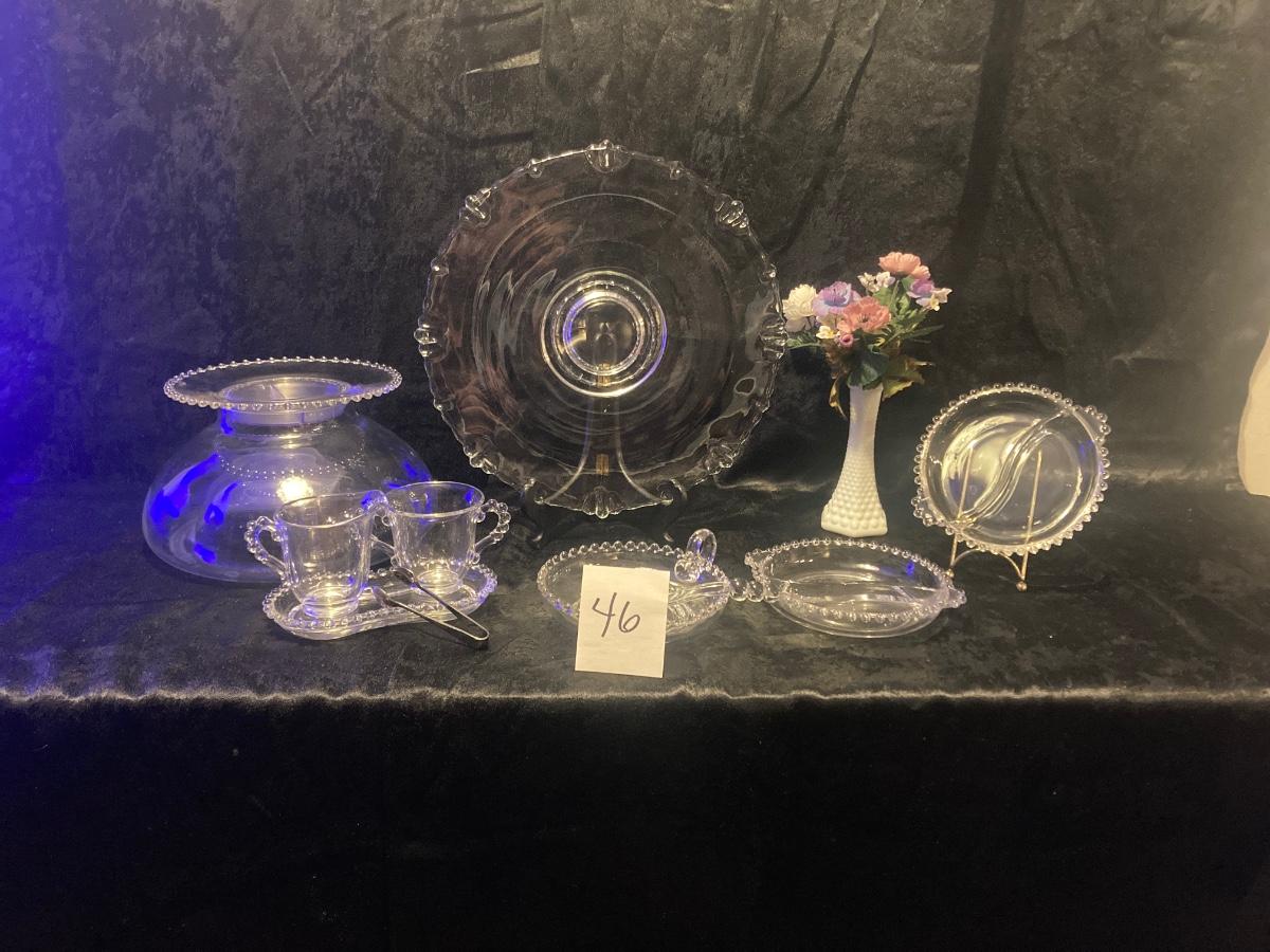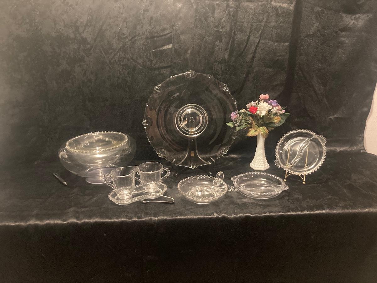 A Lovely centerpiece to fill with whatever your heart desires and Vintage Candlewick pieces , and an E.O.. Brody bud vase.