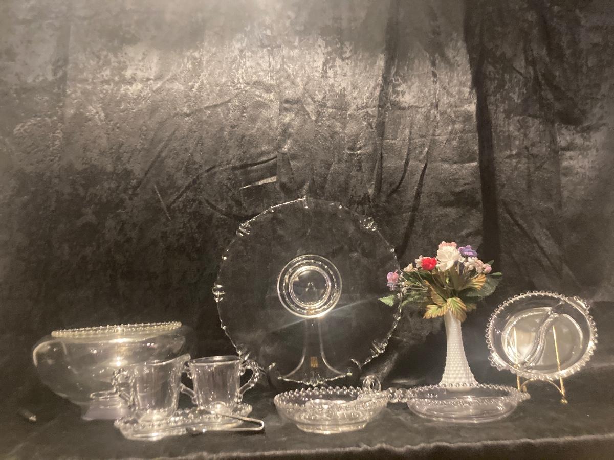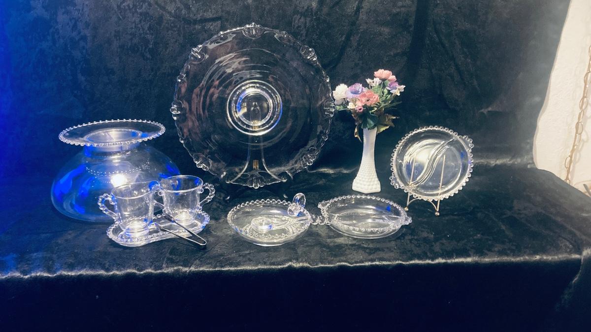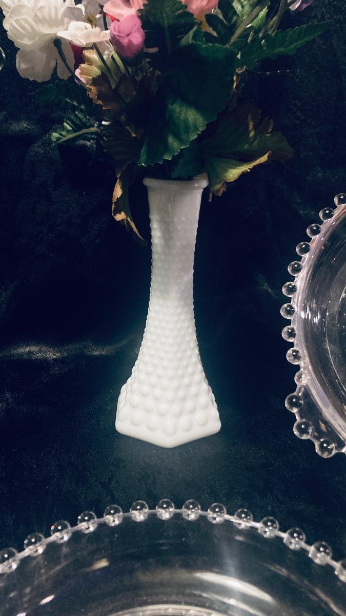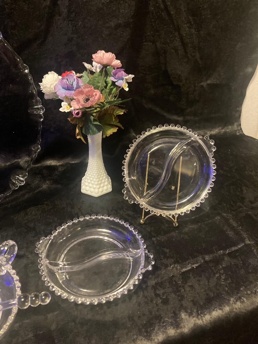 A Lovely centerpiece to fill with whatever your heart desires and Vintage Candlewick pieces , and an E.O.. Brody bud vase.