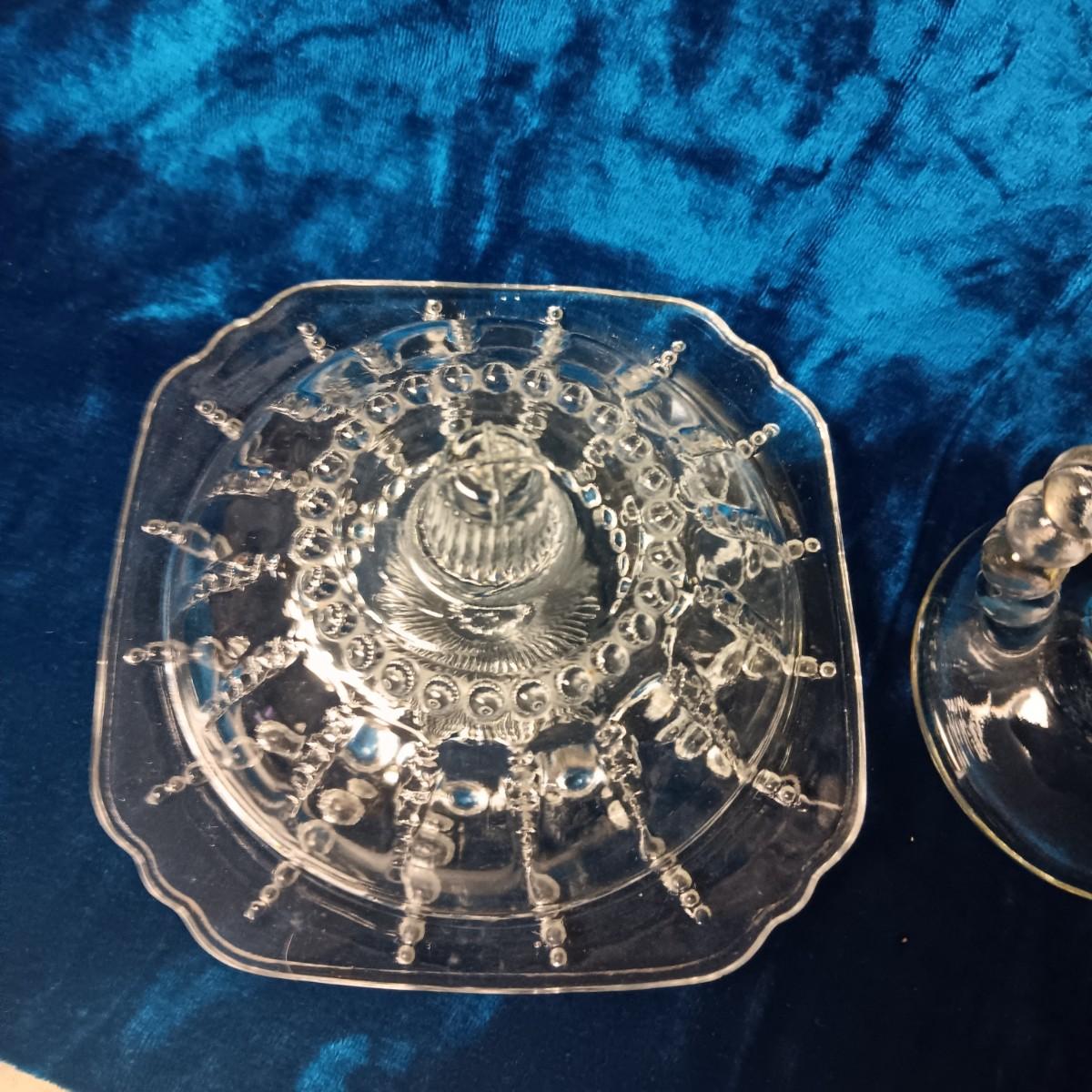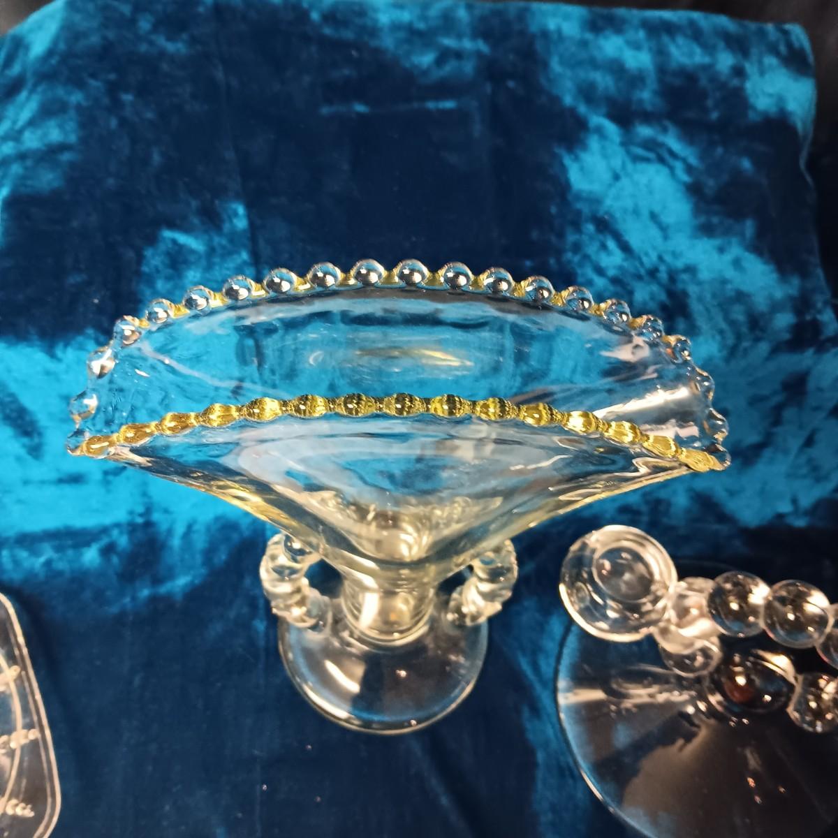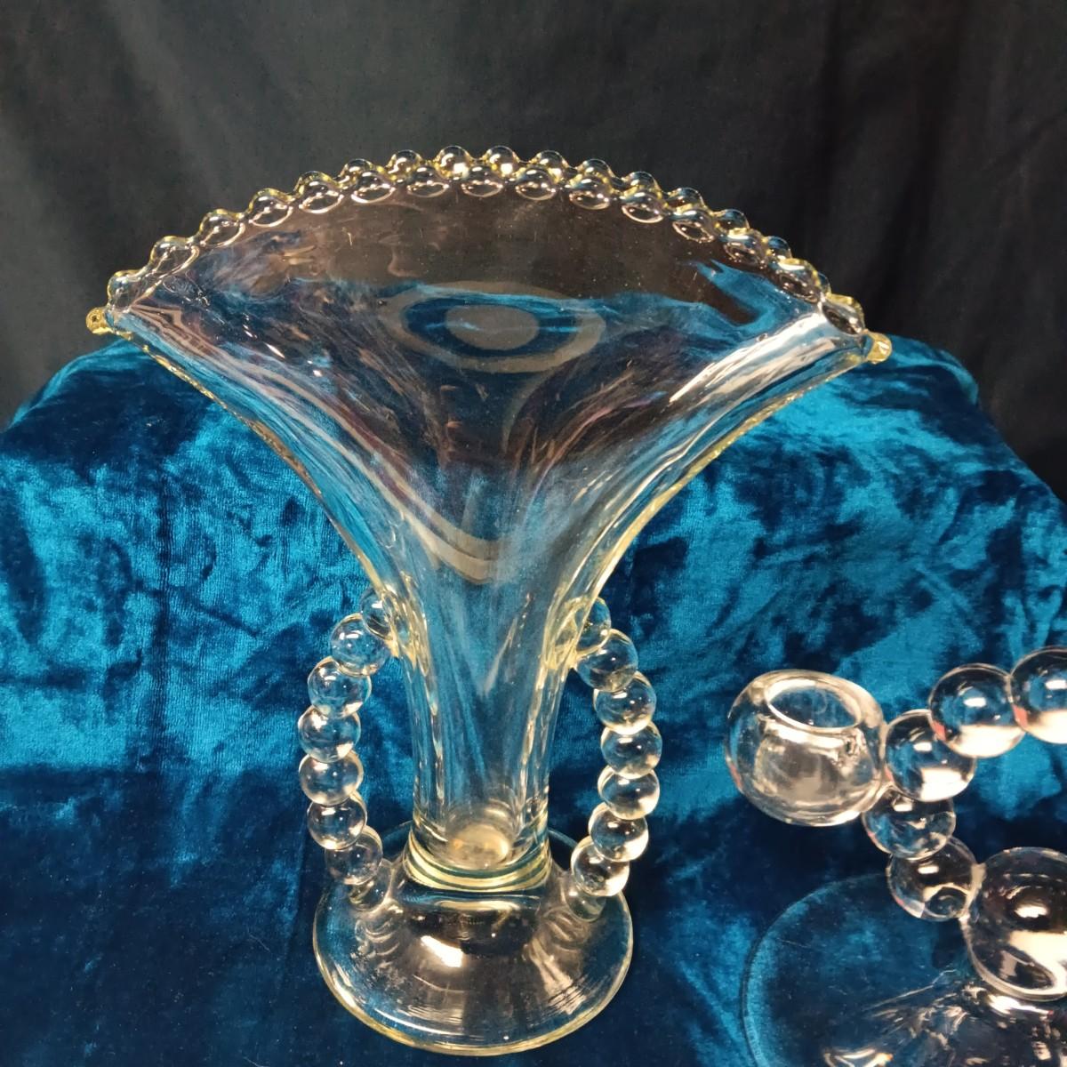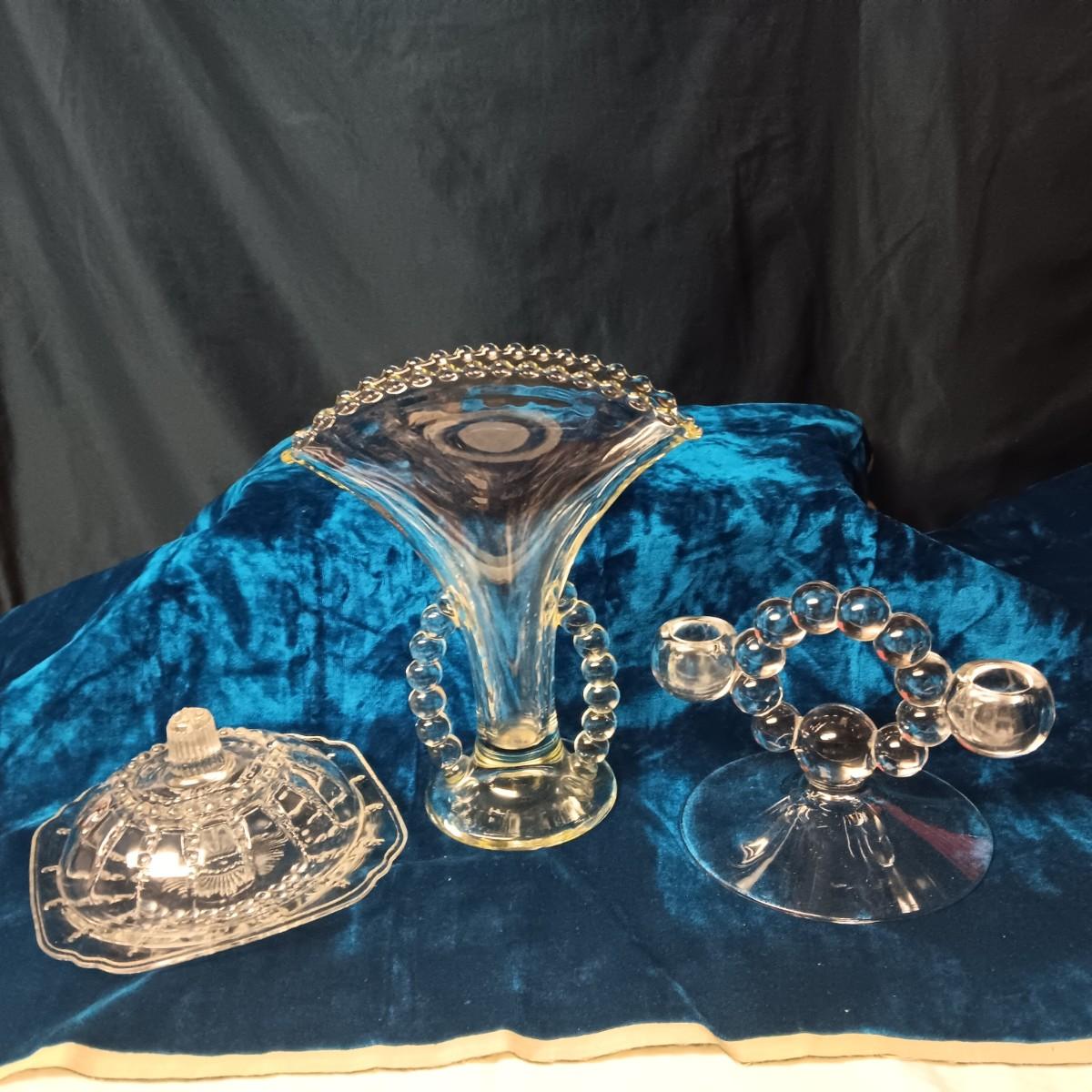 CANDLEWICK FAN VASE & DOUBLE CANDLE HOLDER PLUS COVERED CHEESE DISH