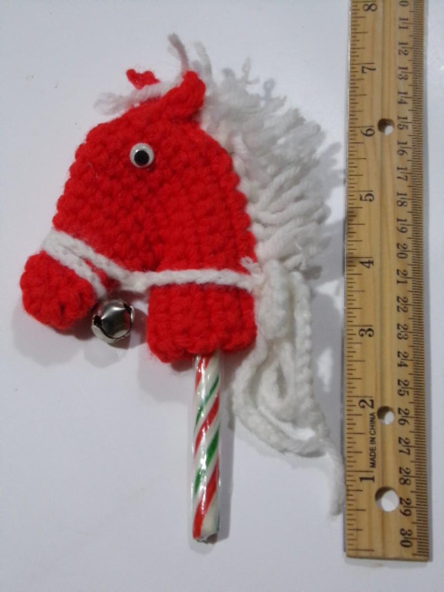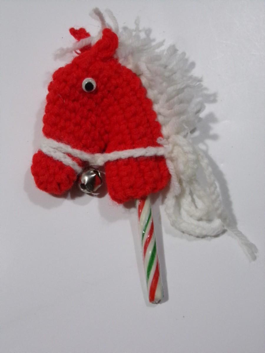 Hand crafted crocheted candy cane holder tree ornament