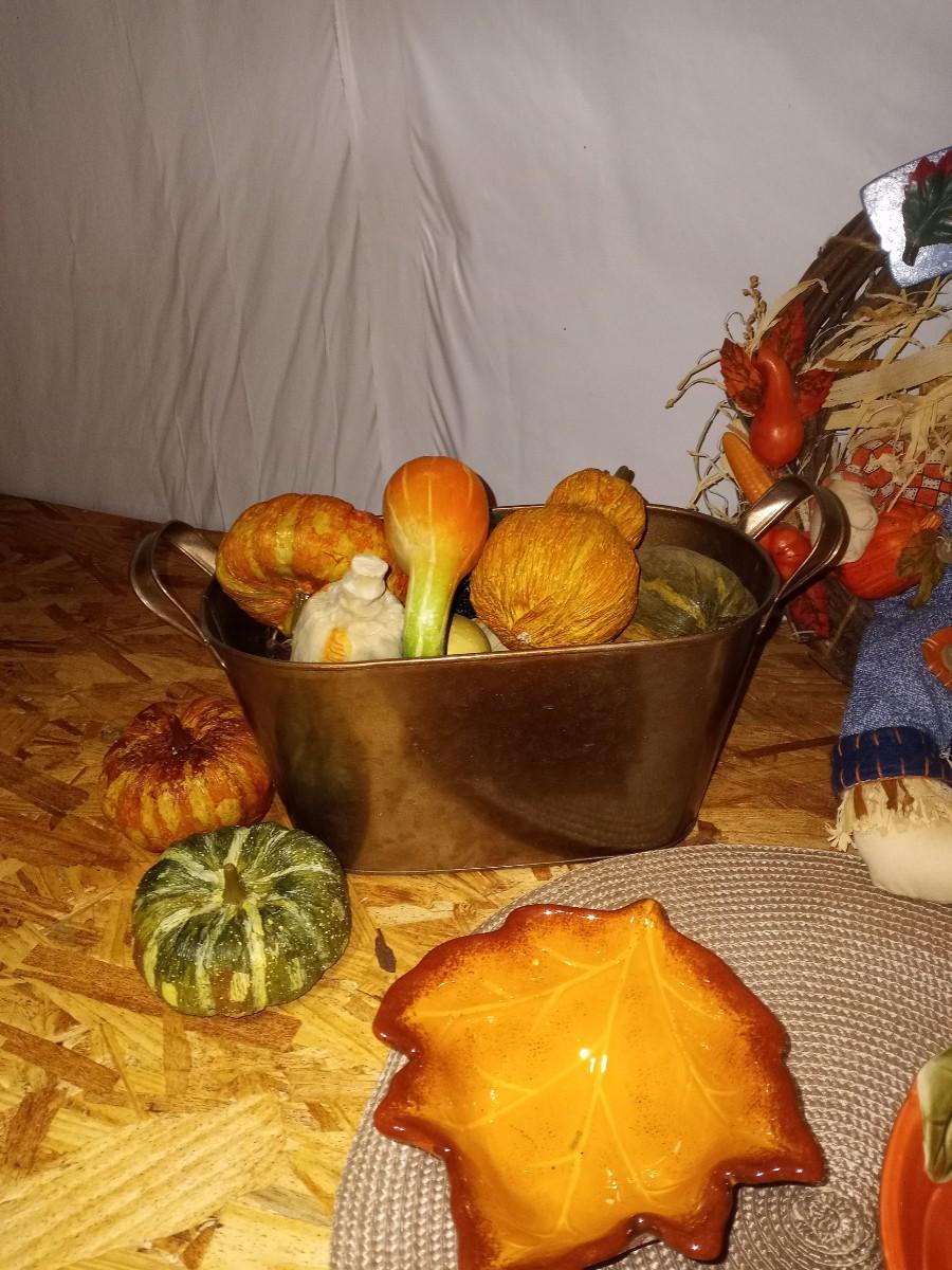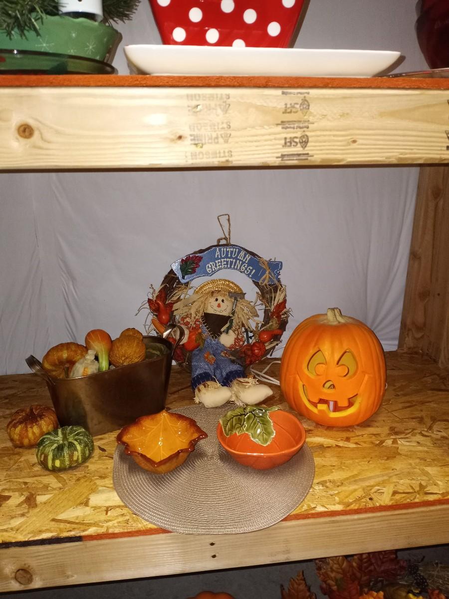 CANDY DISHES 6"-LIGHTED PUMPKIN-METEL BASKET WITH VEGGIES 12 WIDE-FALL WREATH 13 ROUND