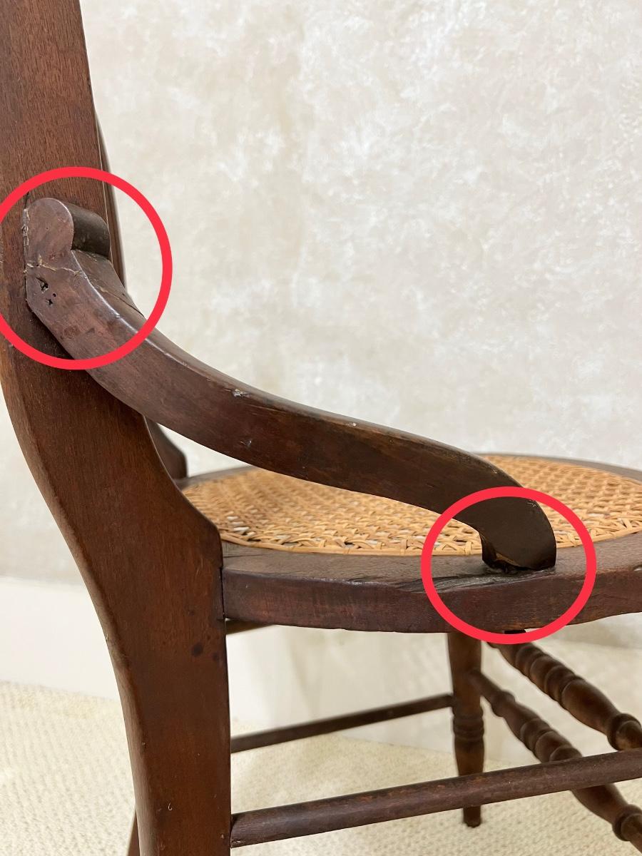 Arms need minor repair ~ 1 of the arms already has had a repair made, see photos ~`32” H x 18” W x 21.5” D