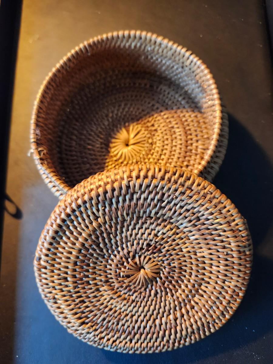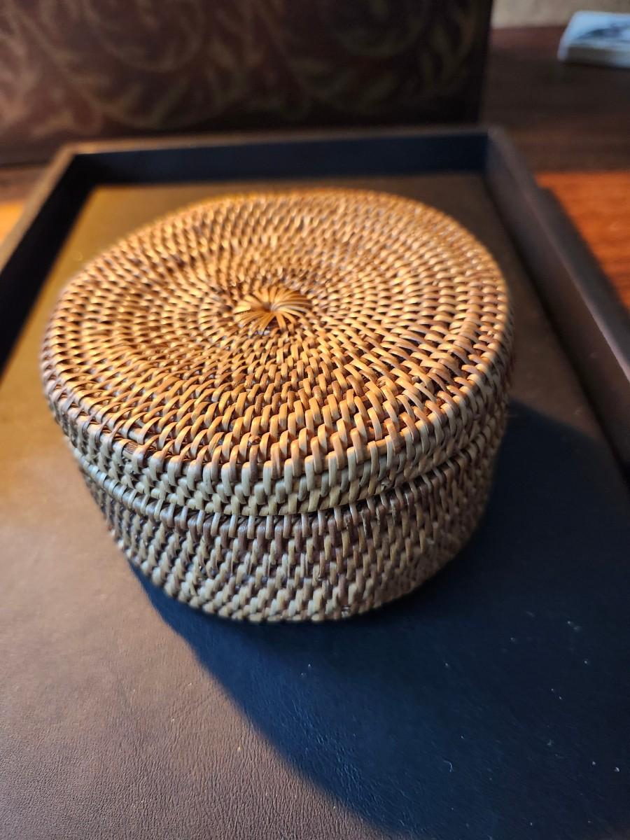 Made with cane which is difficult to weave with, there is some sight aging of the cane.