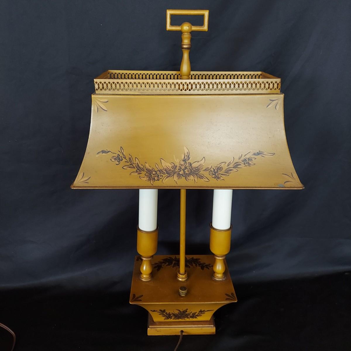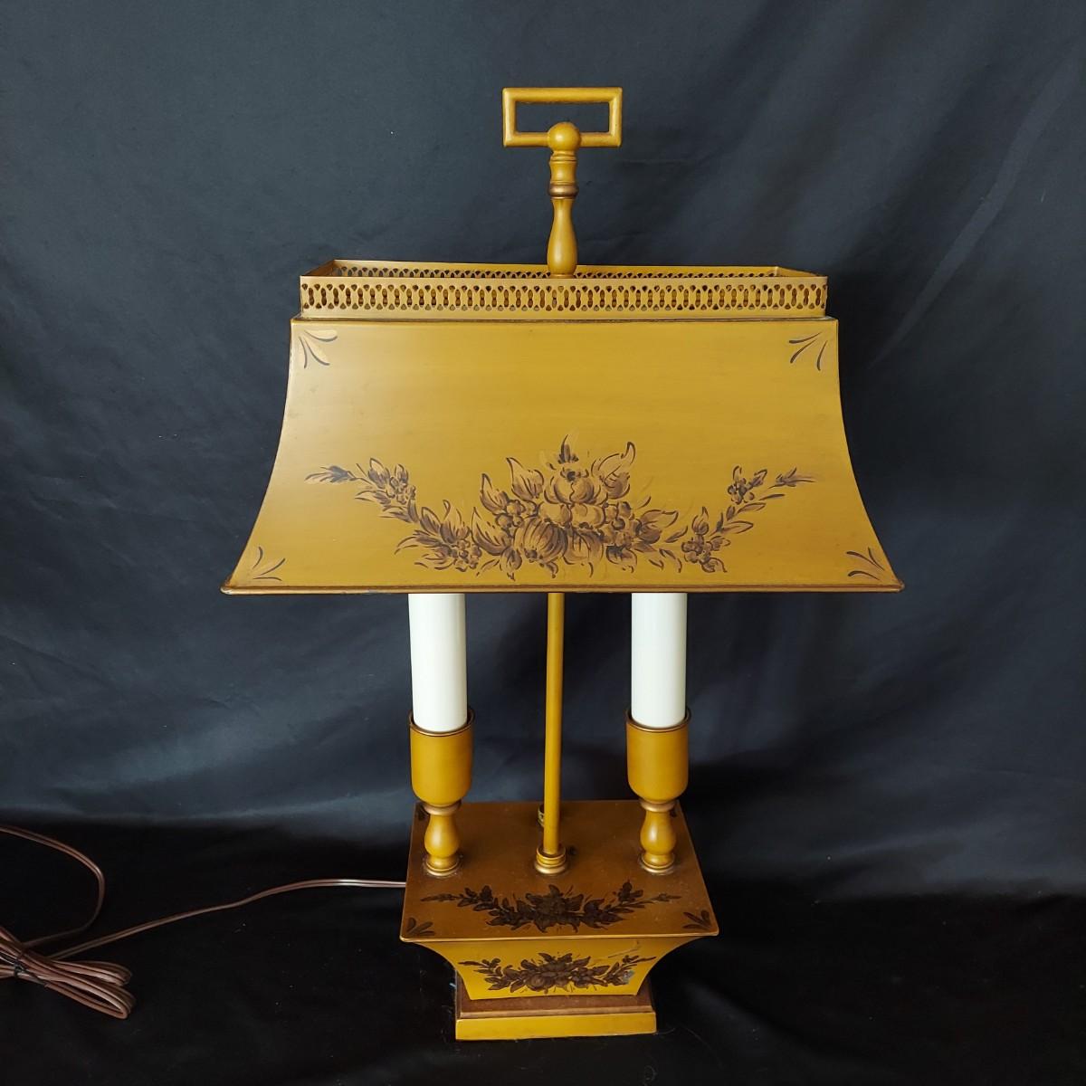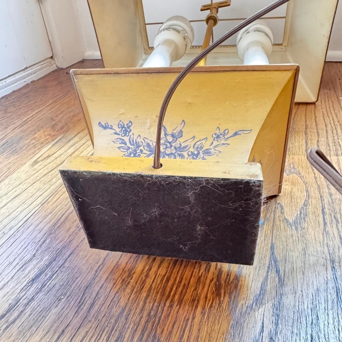 Lot includes a wooden chair with a cane seat as well as a metal lamp and a metal bucket. The chair measures 17” x 17” x 33"H w/ a 17.5"H seat height. The lamp has a knob on the base that turns it on and off. It measures 13” x 7” x 23"H. Please see photos for details. Local Pickup Only