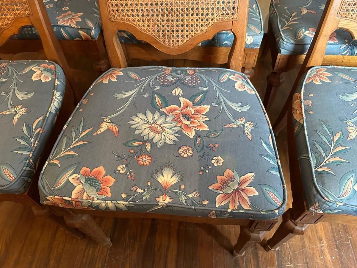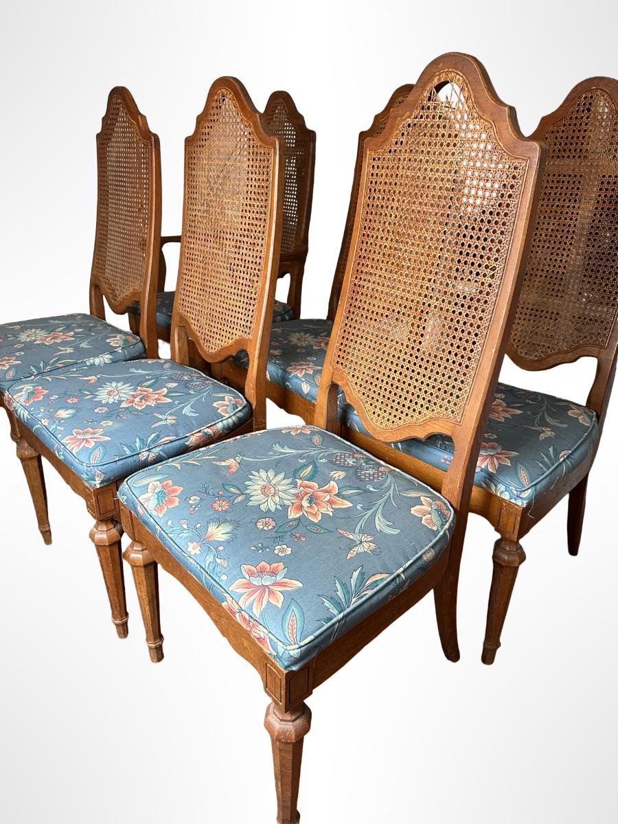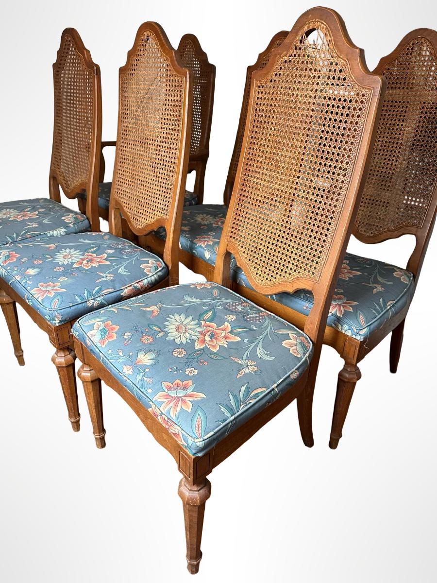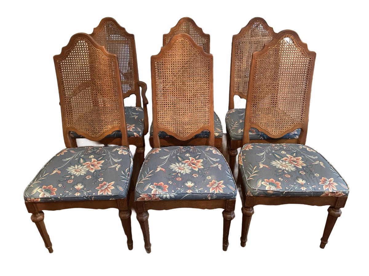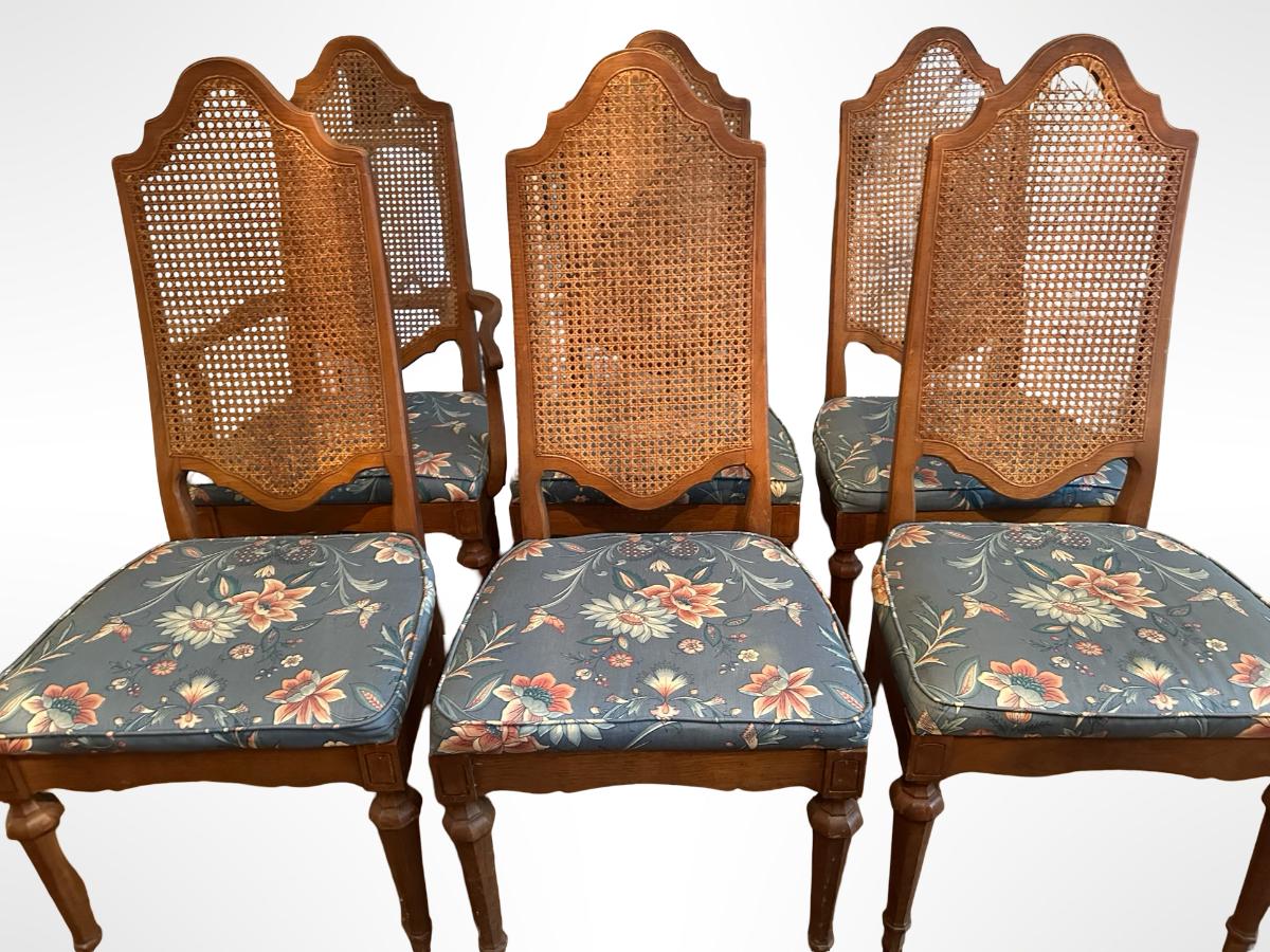 Cane-Back Dining Chairs with Upholstered Seats - Set of 6