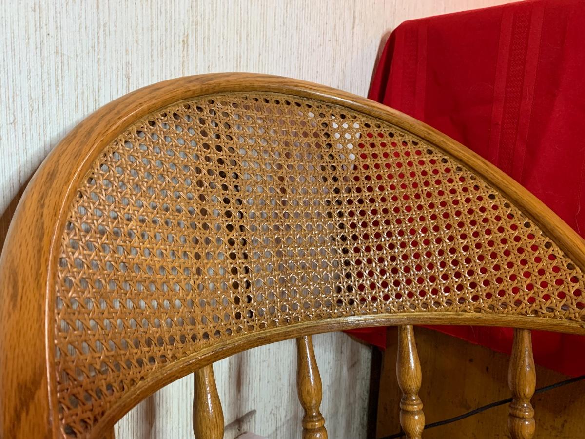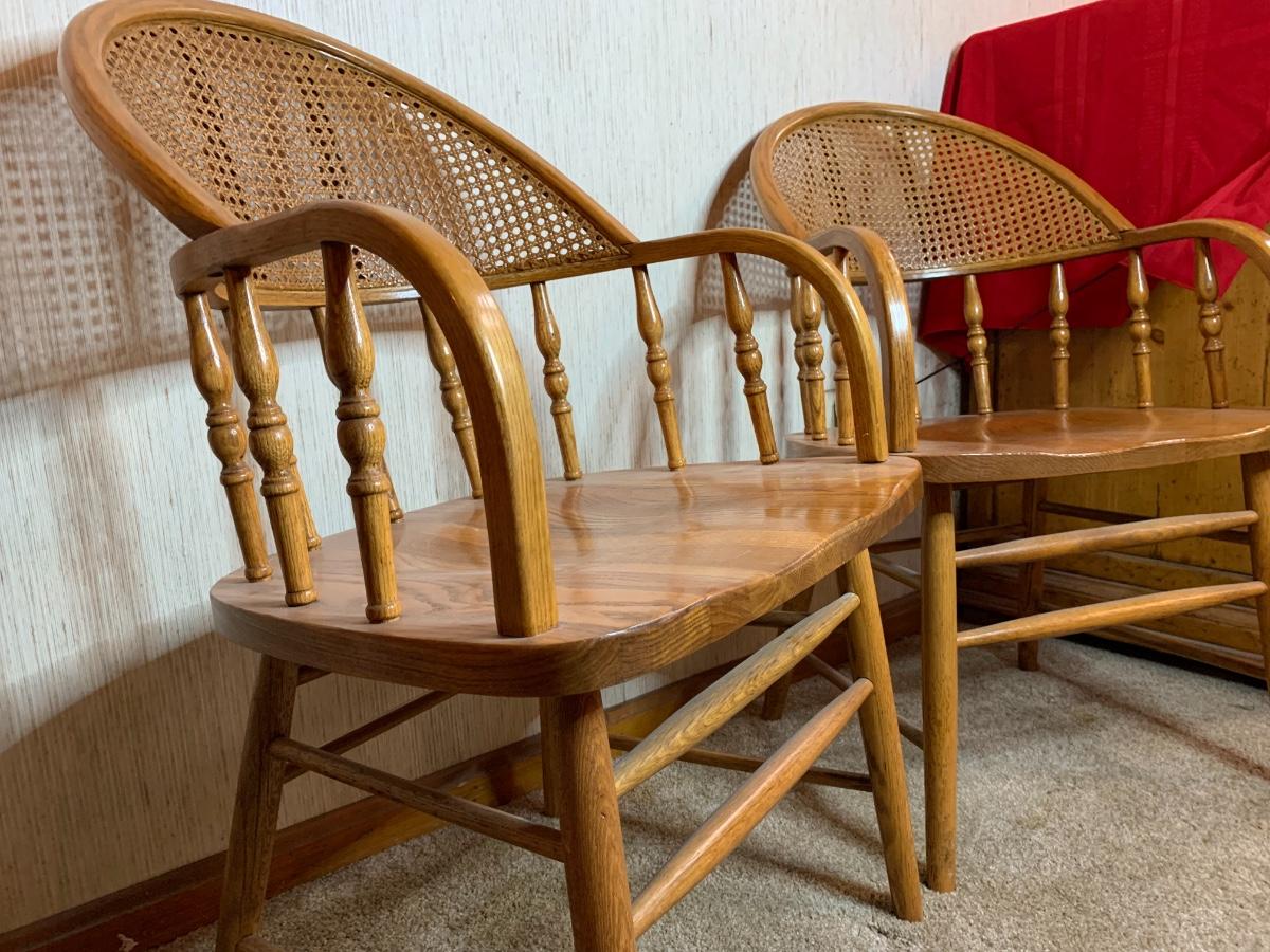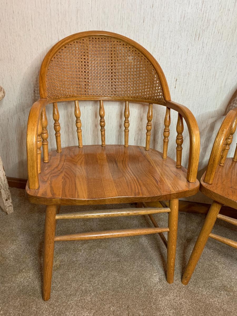 Two oak chairs, 33 inches in height and 17 inch seat height and 16.5 inch seat depth