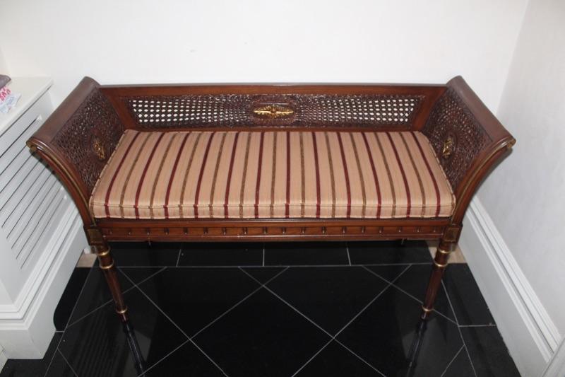Excellent overall condition, as shown. Settee measures 45”w x 16”d x 27.5”h.