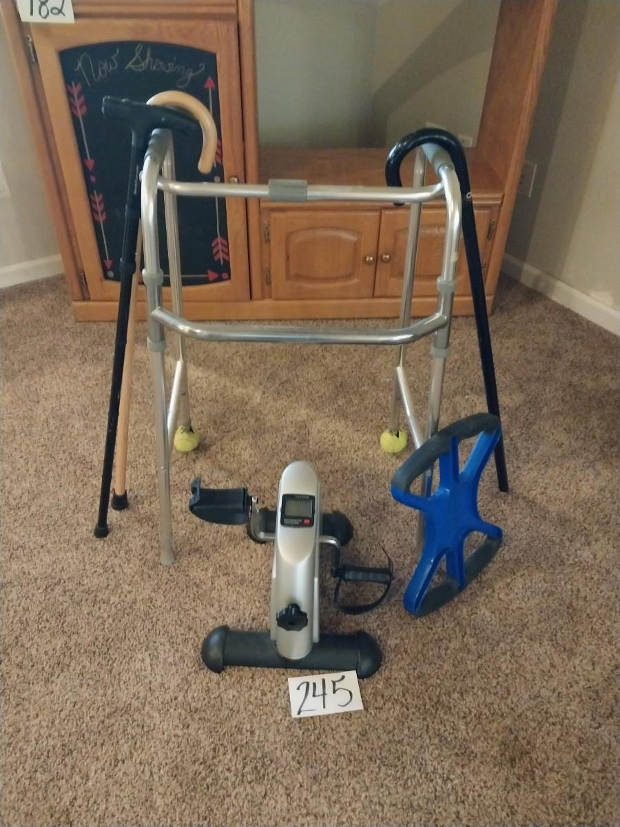 CANES, WALKER, PEDAL IN PLACE AND A LIBERTY LIFT