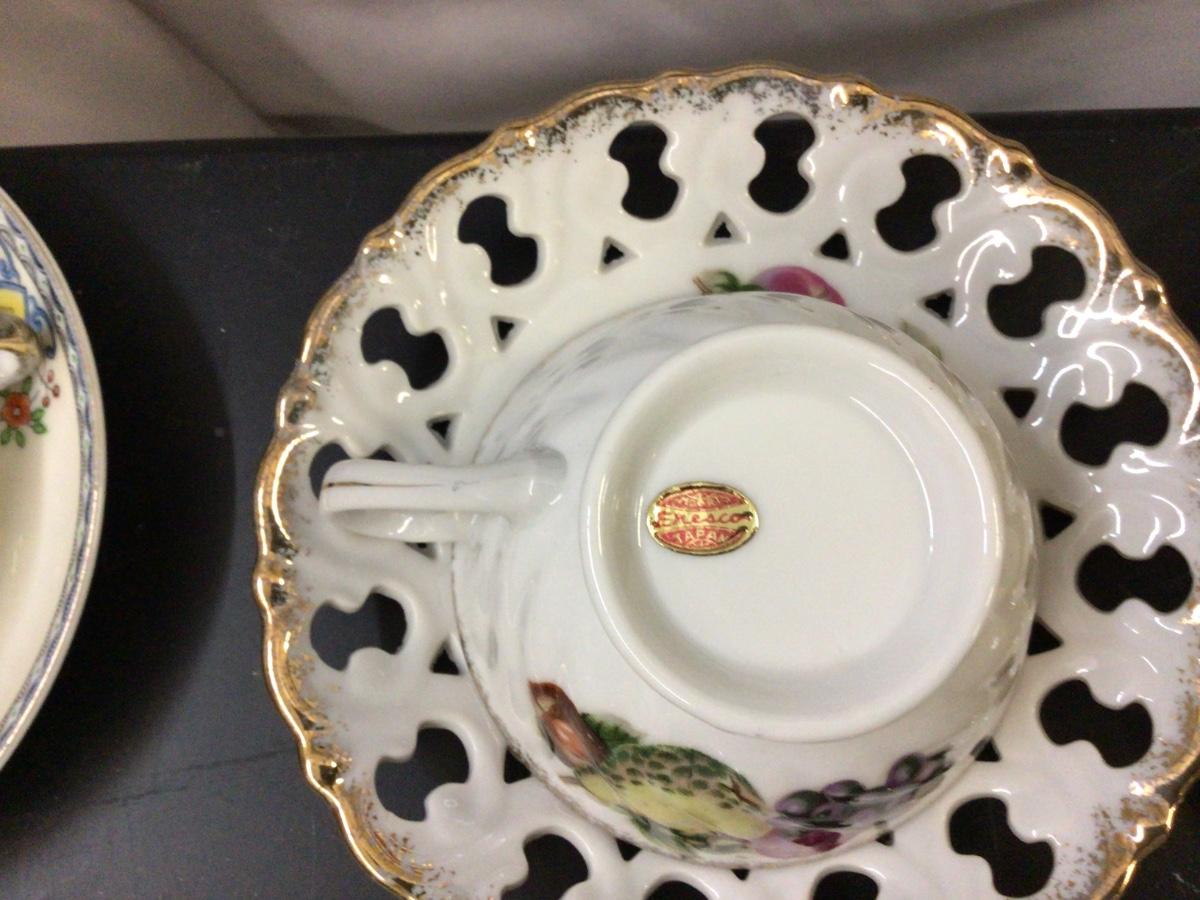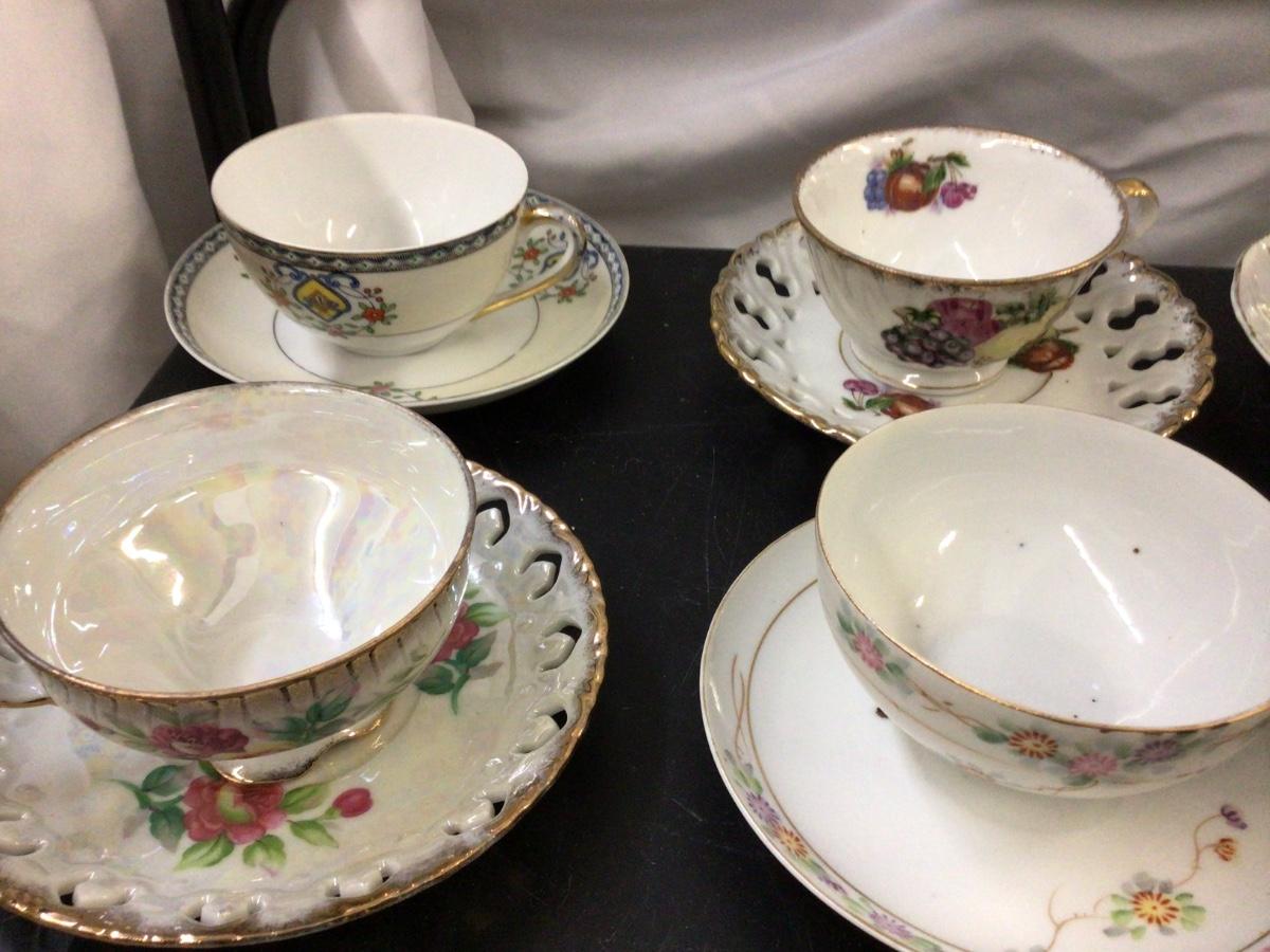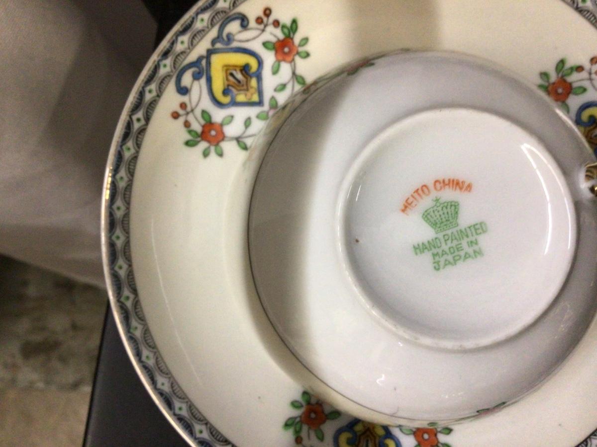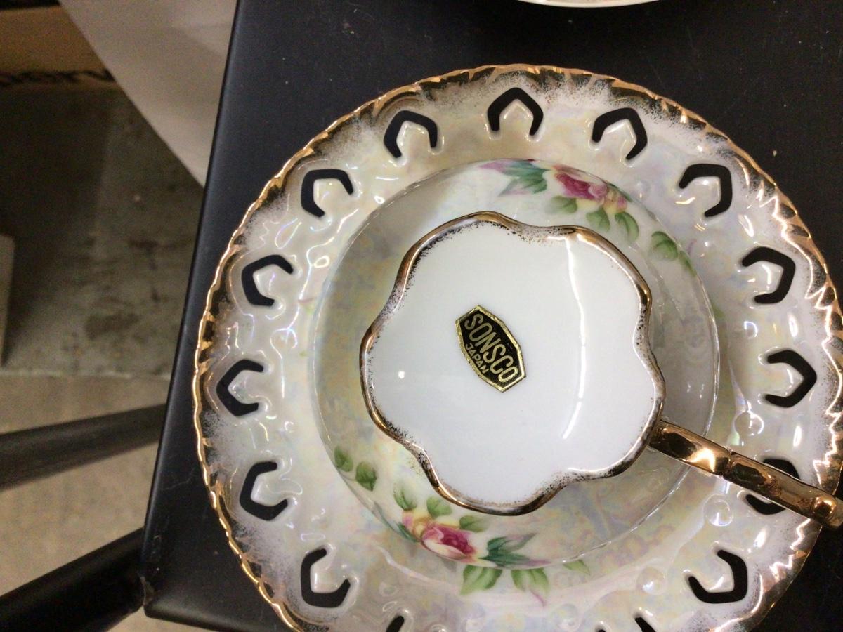 You get a great set of three canister with green hearts and matching large salt and pepper. You also get 5 cups and saucer. Three are name brand,one Sonscon, Enesco, and Meita