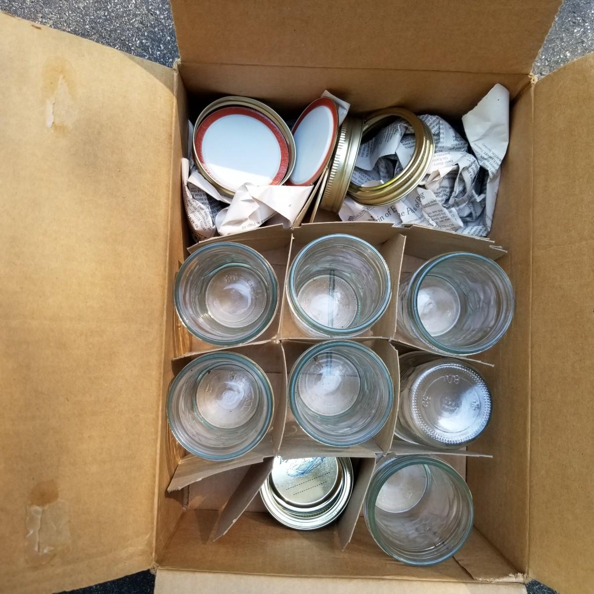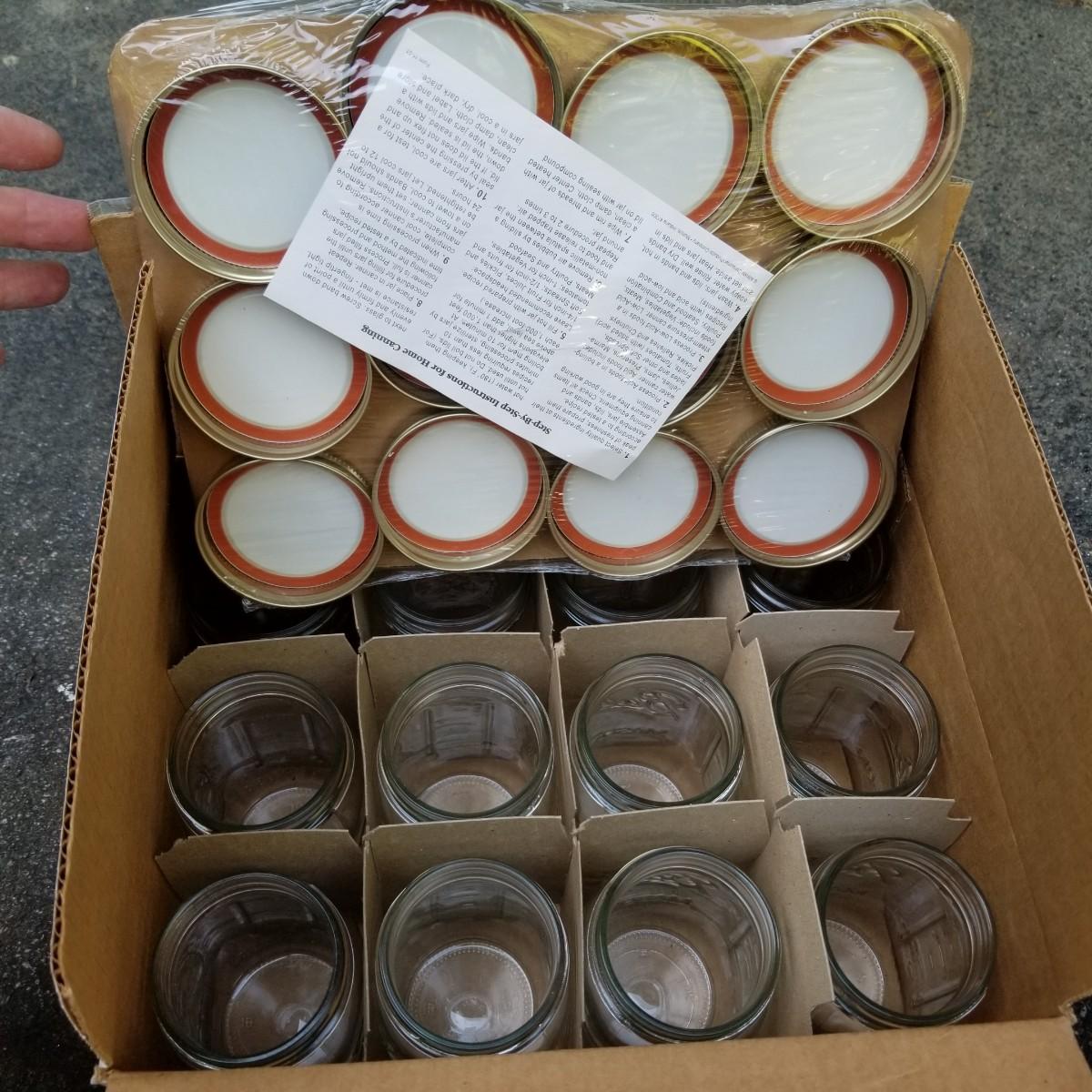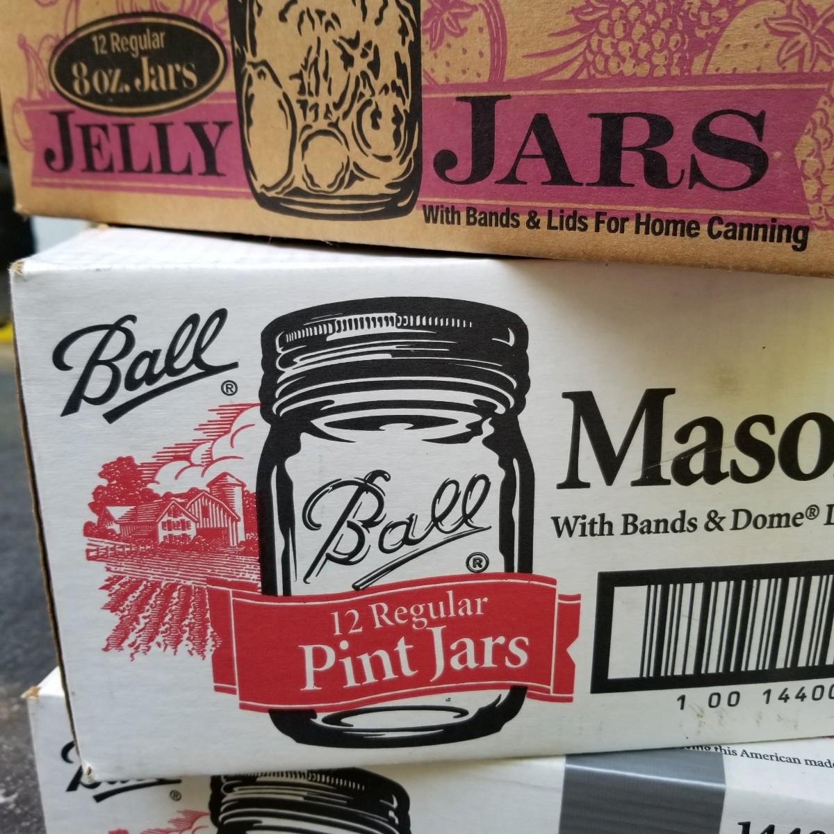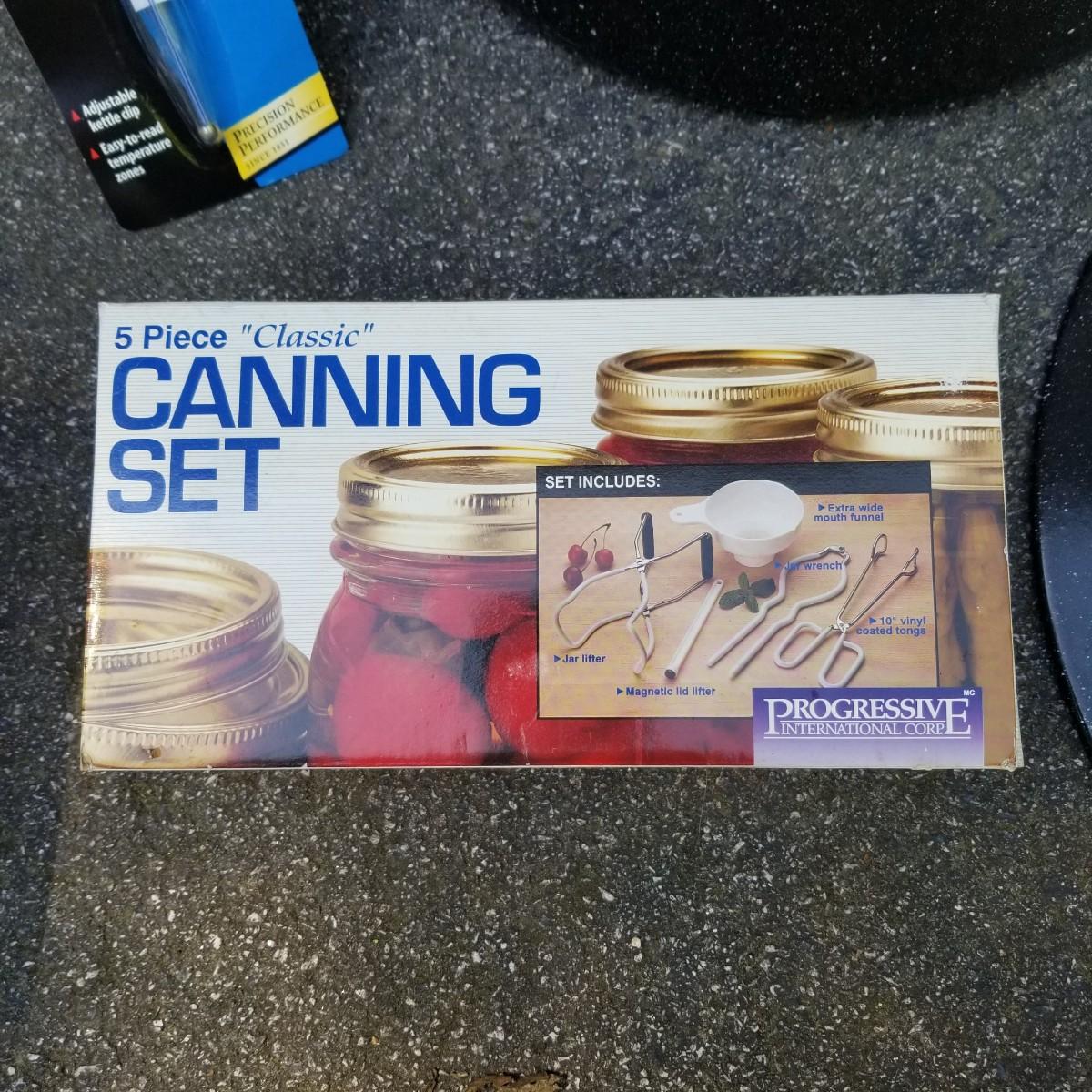 Complete canning set up with jars, lids, thermometer, book and canning pot with jar lifter. Not all jar cases full. Total twenty three pint Mason jars with lids, and total nineteen eight oz Golden Harvest jelly jars. All items appear to be new. Local pickup only.
