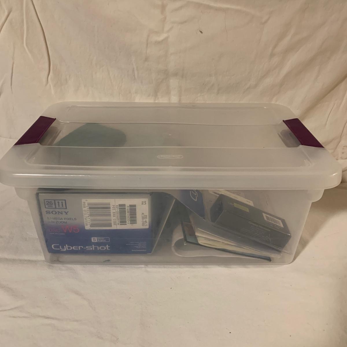 Cannon and Sony digital camera lot. Lot includes two cameras, Sony 128 MB memory stick, two cases, unopened Gear Head flash card reader, and two cannon batteries with plug in charger. Unable to power cameras on, likely due to uncharged batteries. Battery pack powers on when plugged in. Please see photos for more details. Shipping available. Shipping can be costly. We suggest contacting our preferred local shipping provider, Postage Express, with dimensions and getting an estimate before bidding: (828) 670-5501 or postageexpress@yahoo.com.