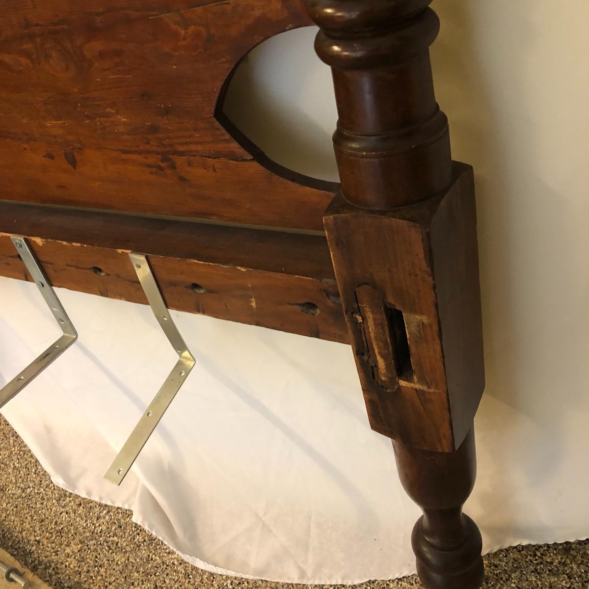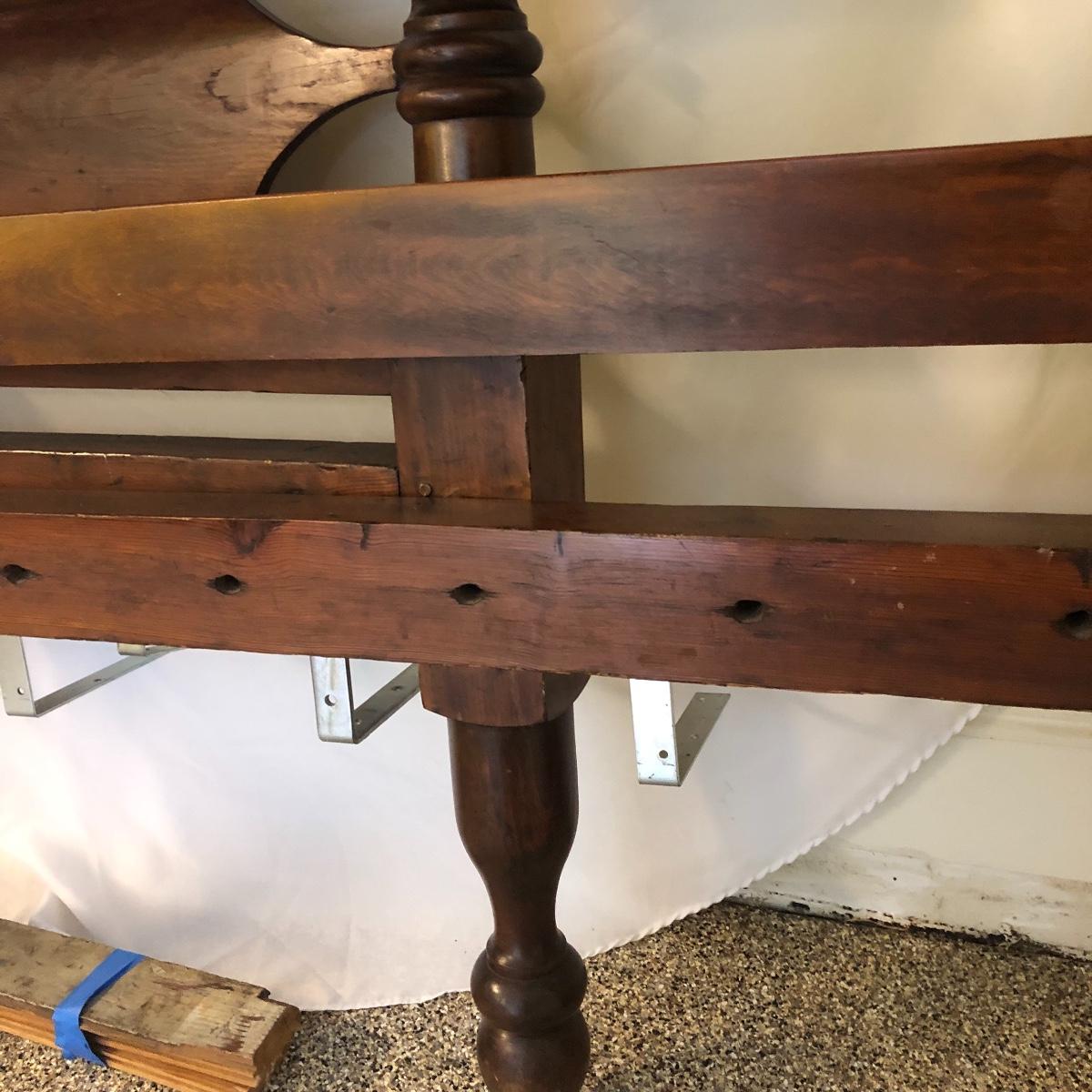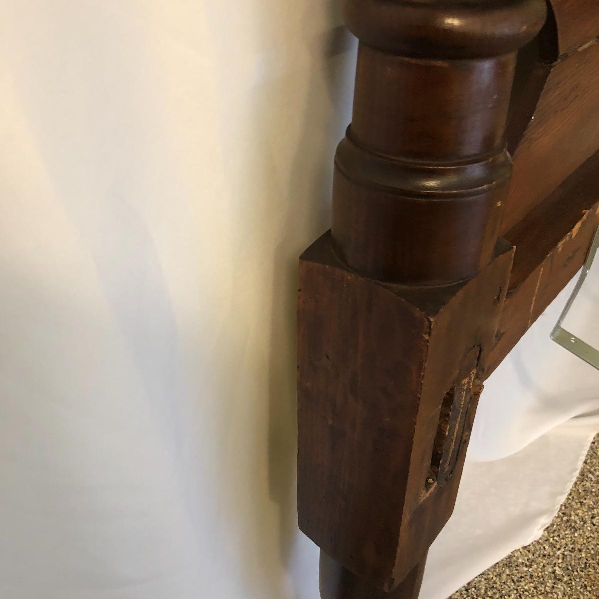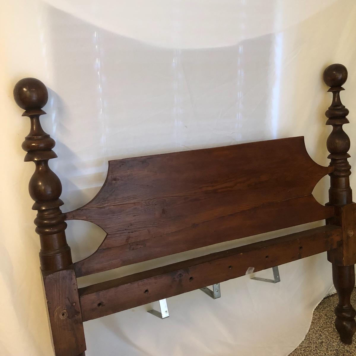 This lot includes a headboard and footboard with three slates and bolts. Dimensions are 56.5” wide (headboard) and 54” tall (top of cannonball). Footboard measures 56.5” and is 53.5” tall. Local pick up only.