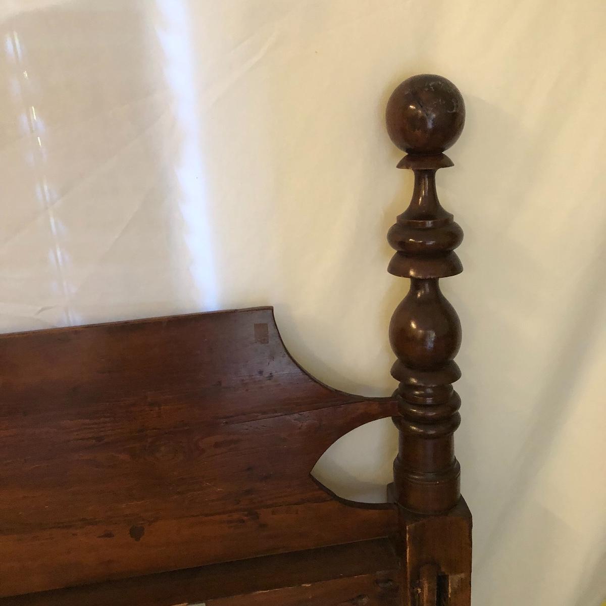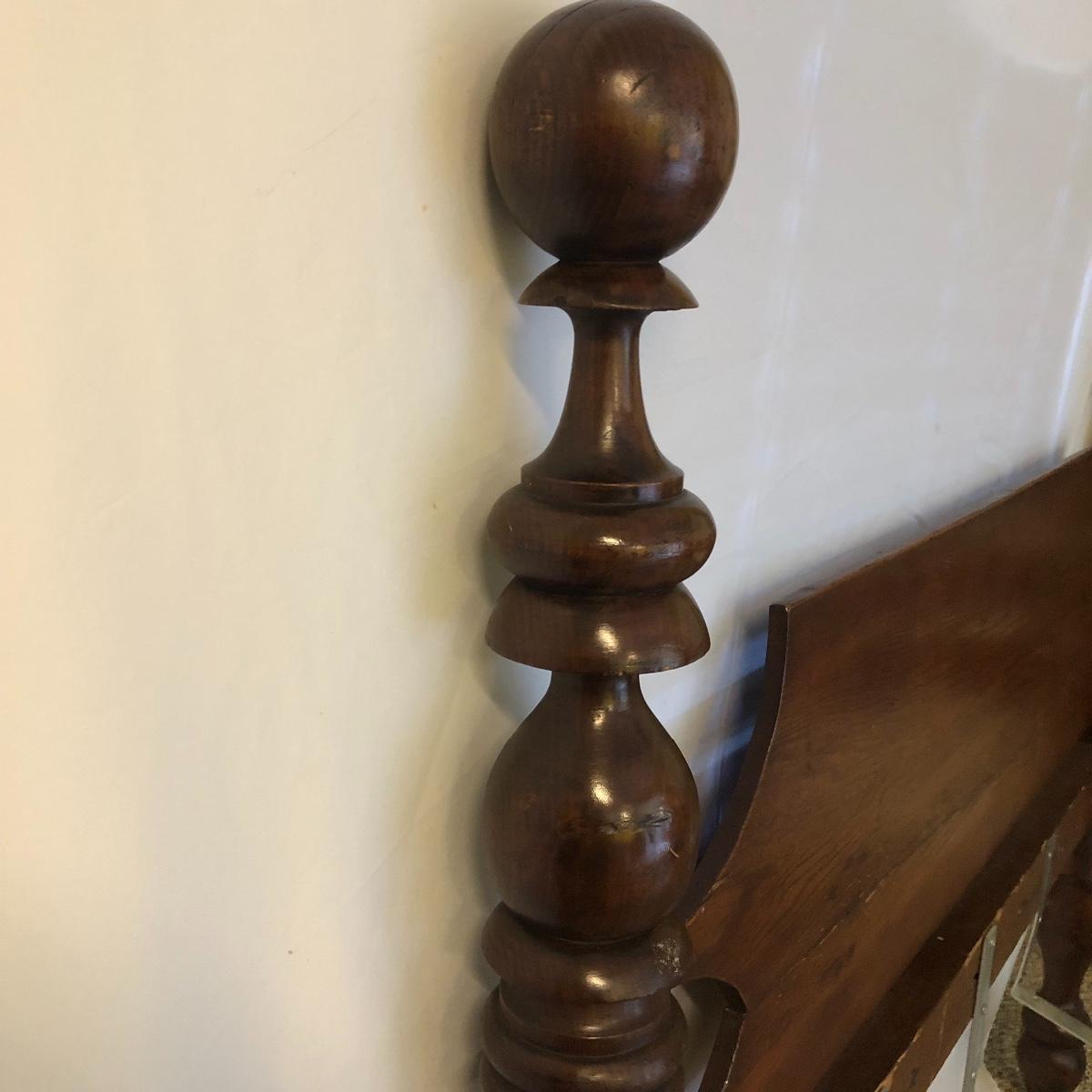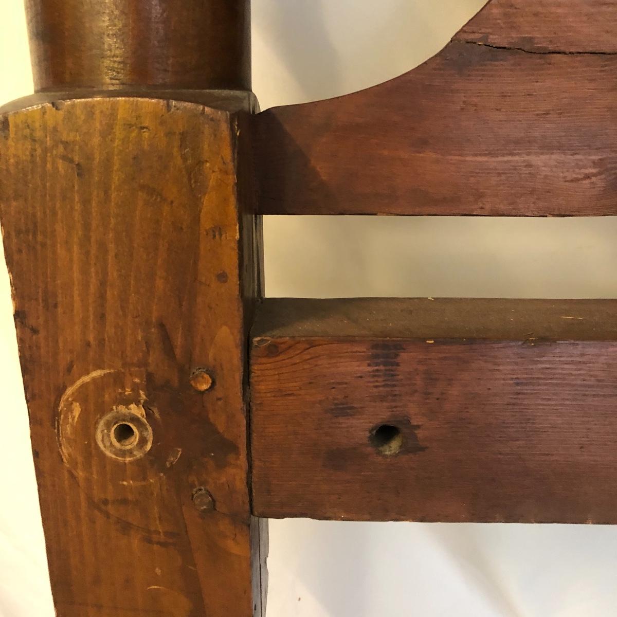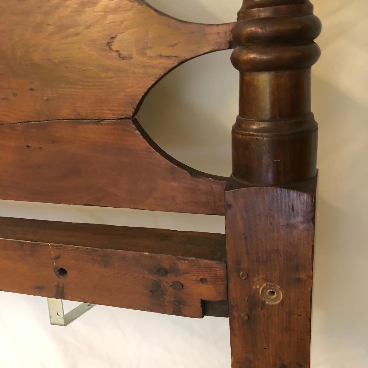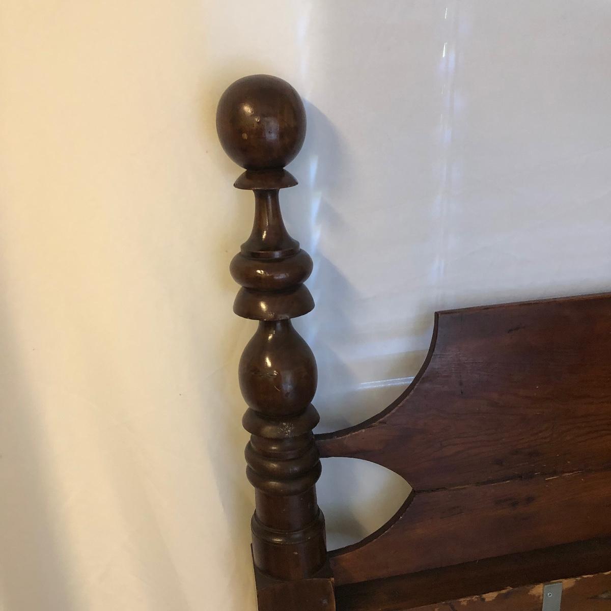 This lot includes a headboard and footboard with three slates and bolts. Dimensions are 56.5” wide (headboard) and 54” tall (top of cannonball). Footboard measures 56.5” and is 53.5” tall. Local pick up only.