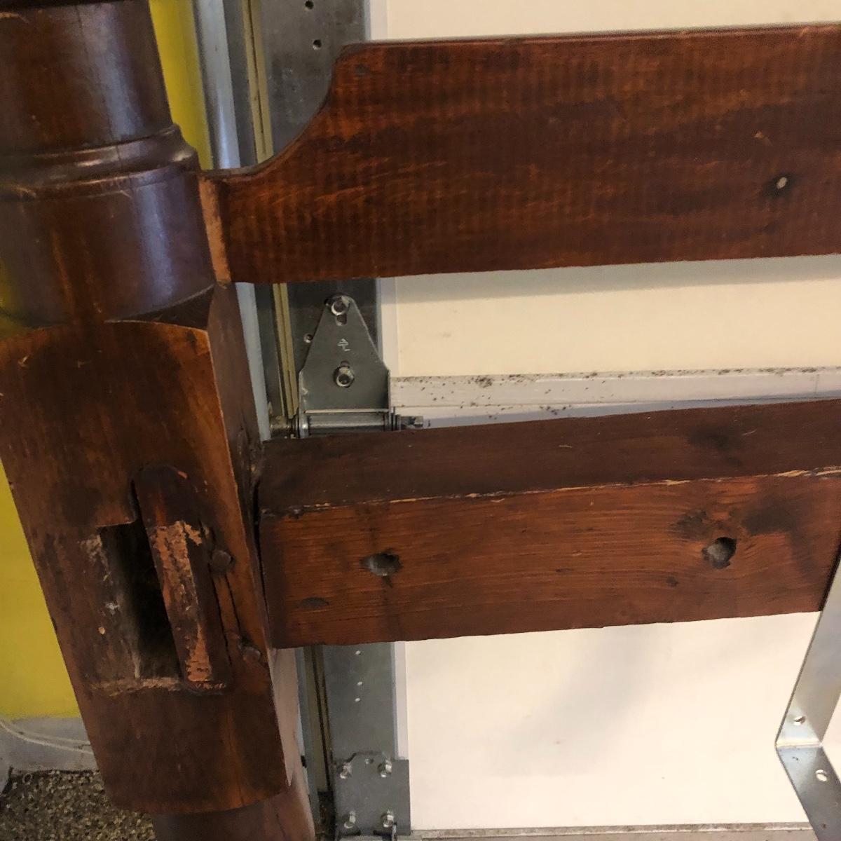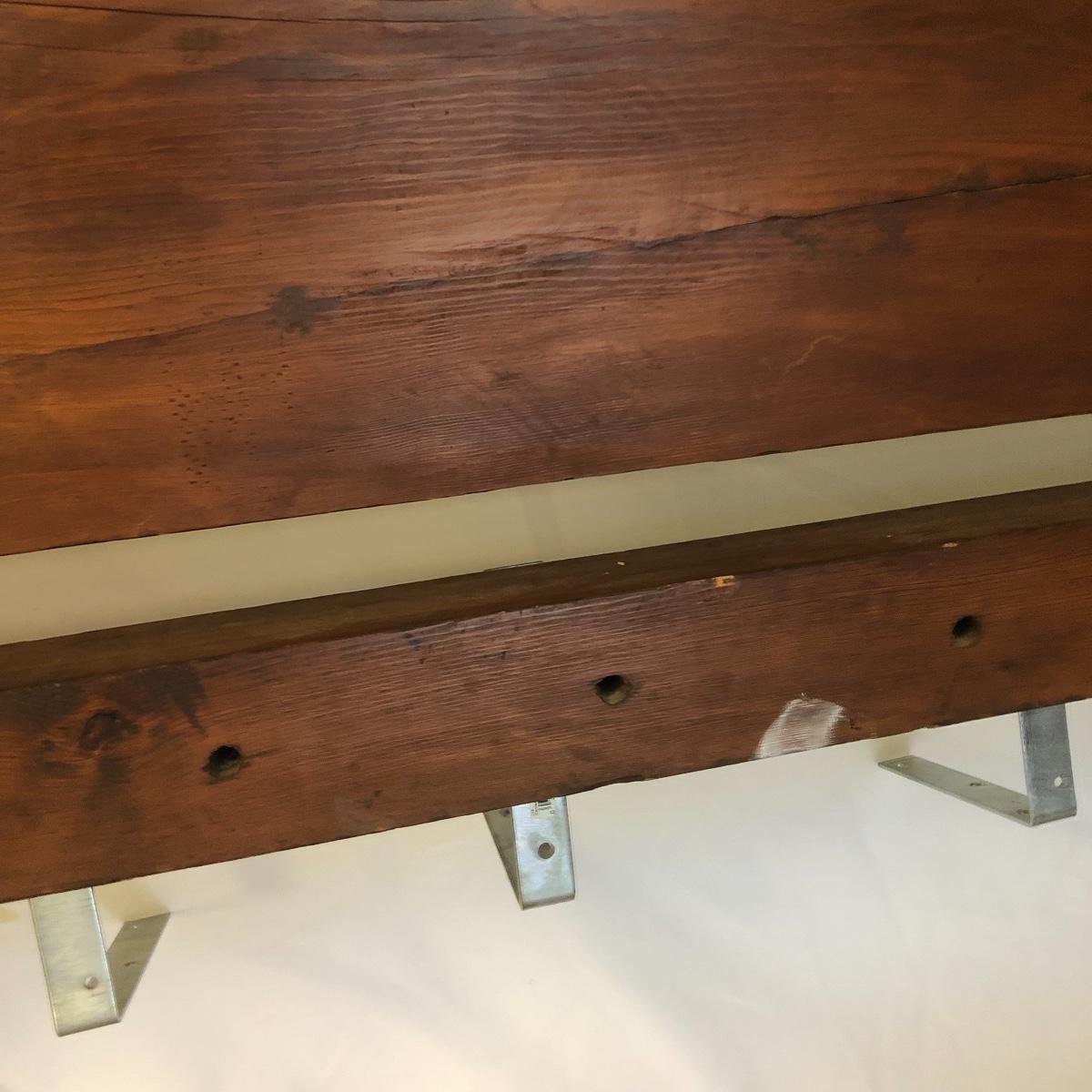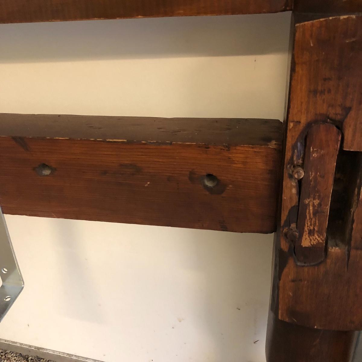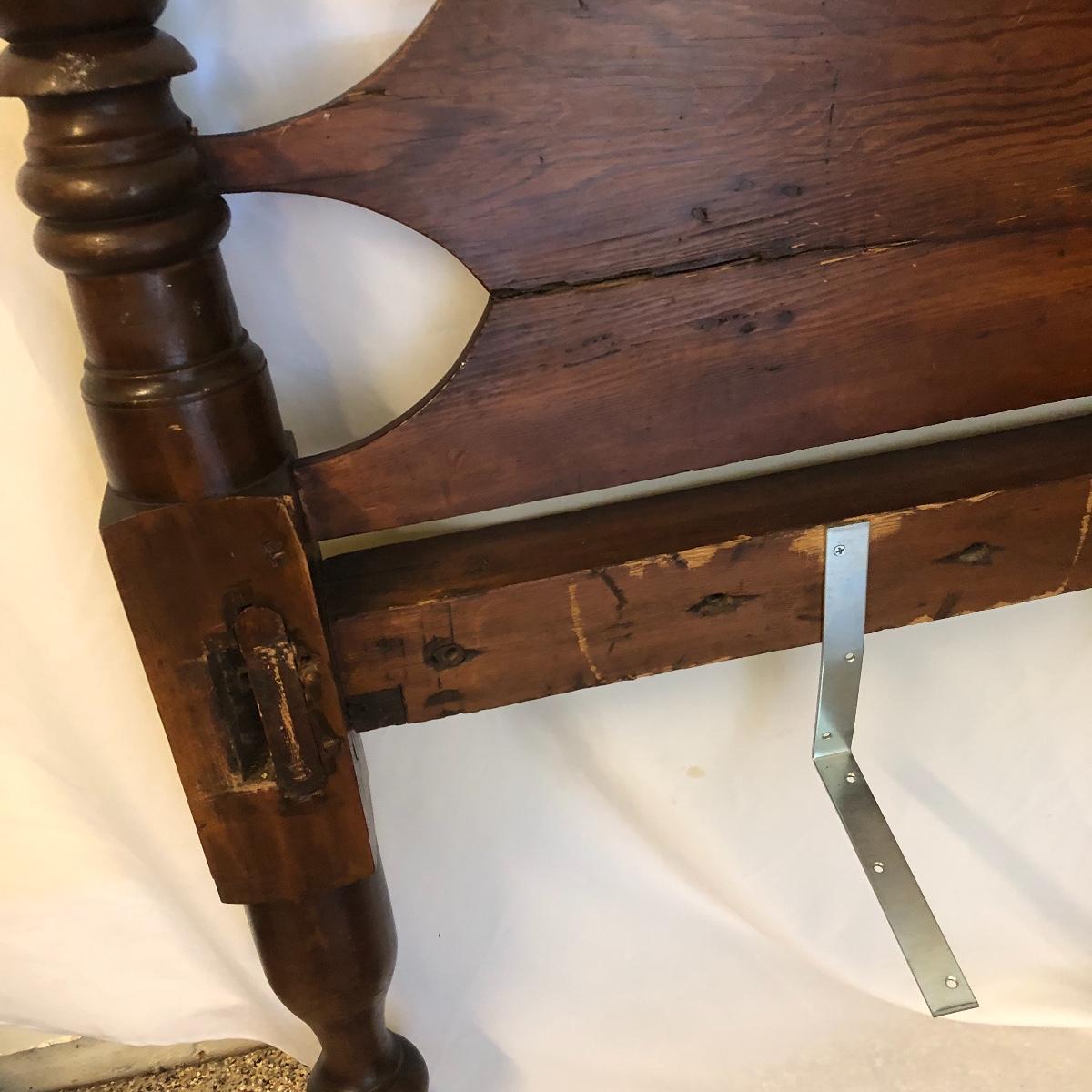 This lot includes a headboard and footboard with three slates and bolts. Dimensions are 56.5” wide (headboard) and 54” tall (top of cannonball). Footboard measures 56.5” and is 53.5” tall. Local pick up only.