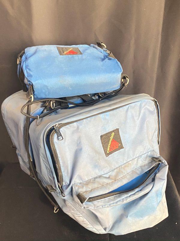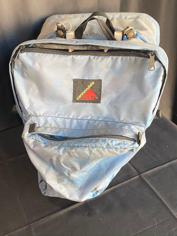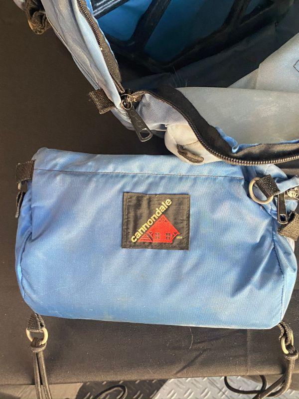 Cannondale Bicycle Saddle Bag. Outside is faded but there are no holes and the zippers work good. Inner frame is in good condition.