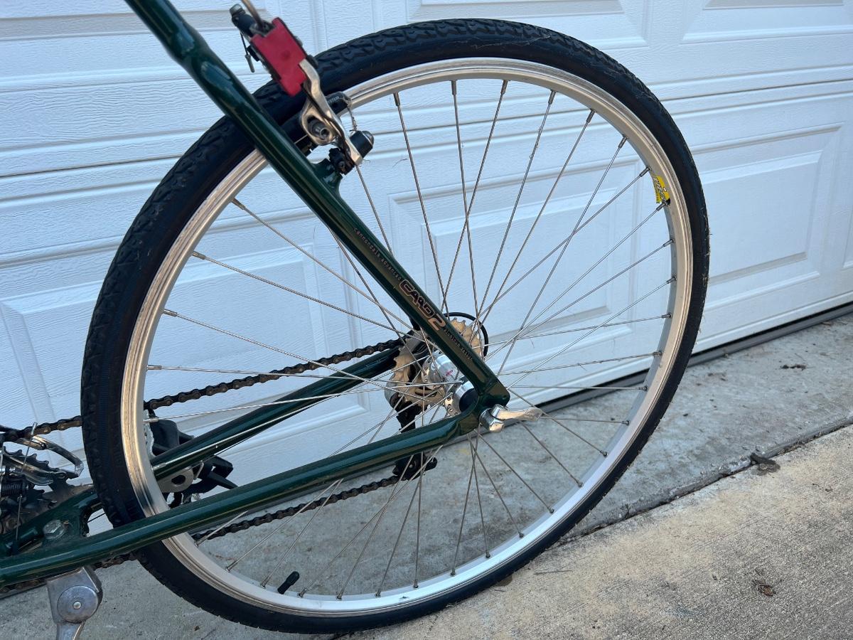 Bike is very tall. Went through all of the gears and they all work as they should as well as the brakes. Tires hold air. Bike sold as-is.