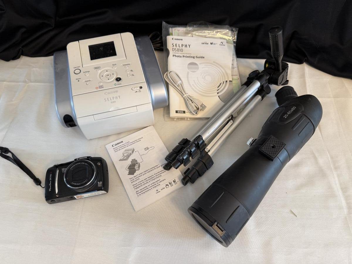 Canon 10X Camera w/Canon Selphy(photo printing) Scope and tripod
