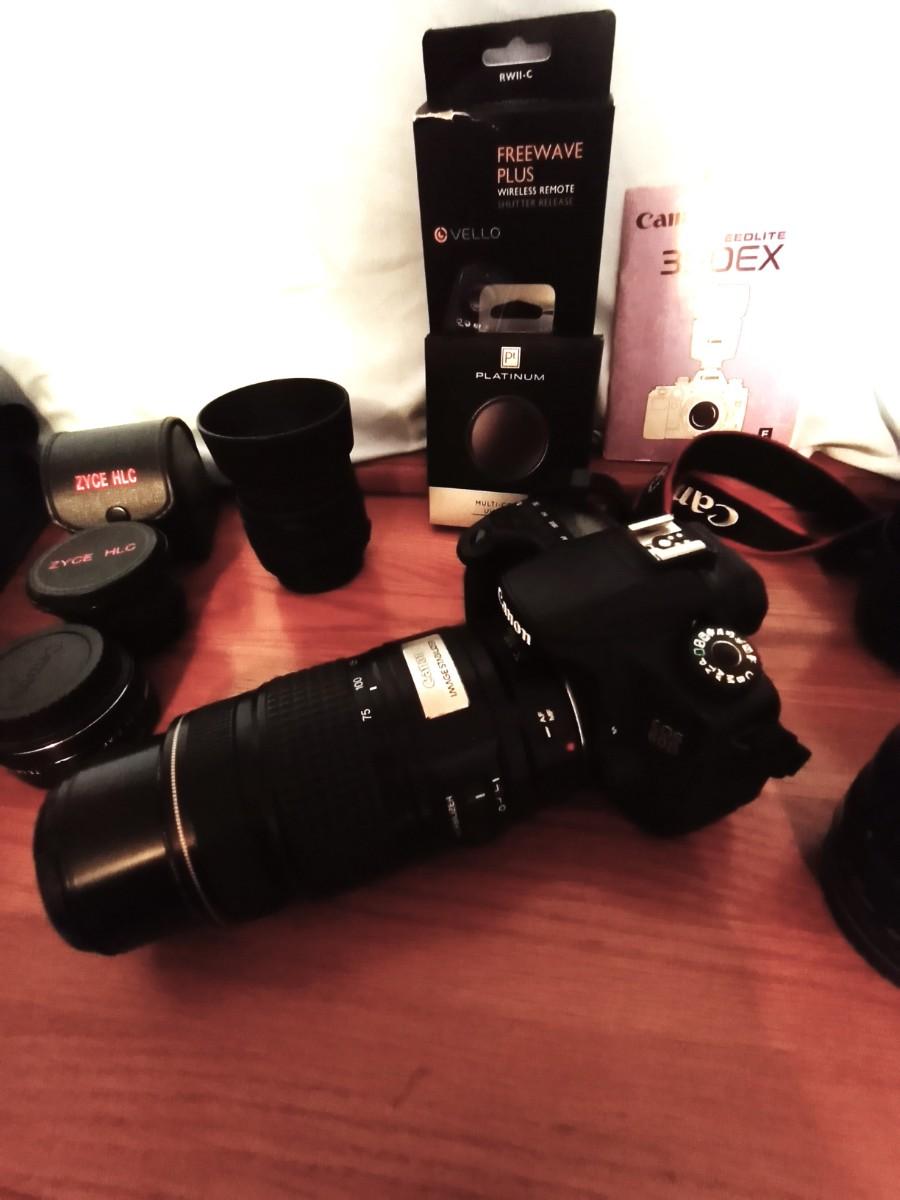 CANON CAMERA WITH LENSES, CARRY BAG AND LOTS OF EXTRAS