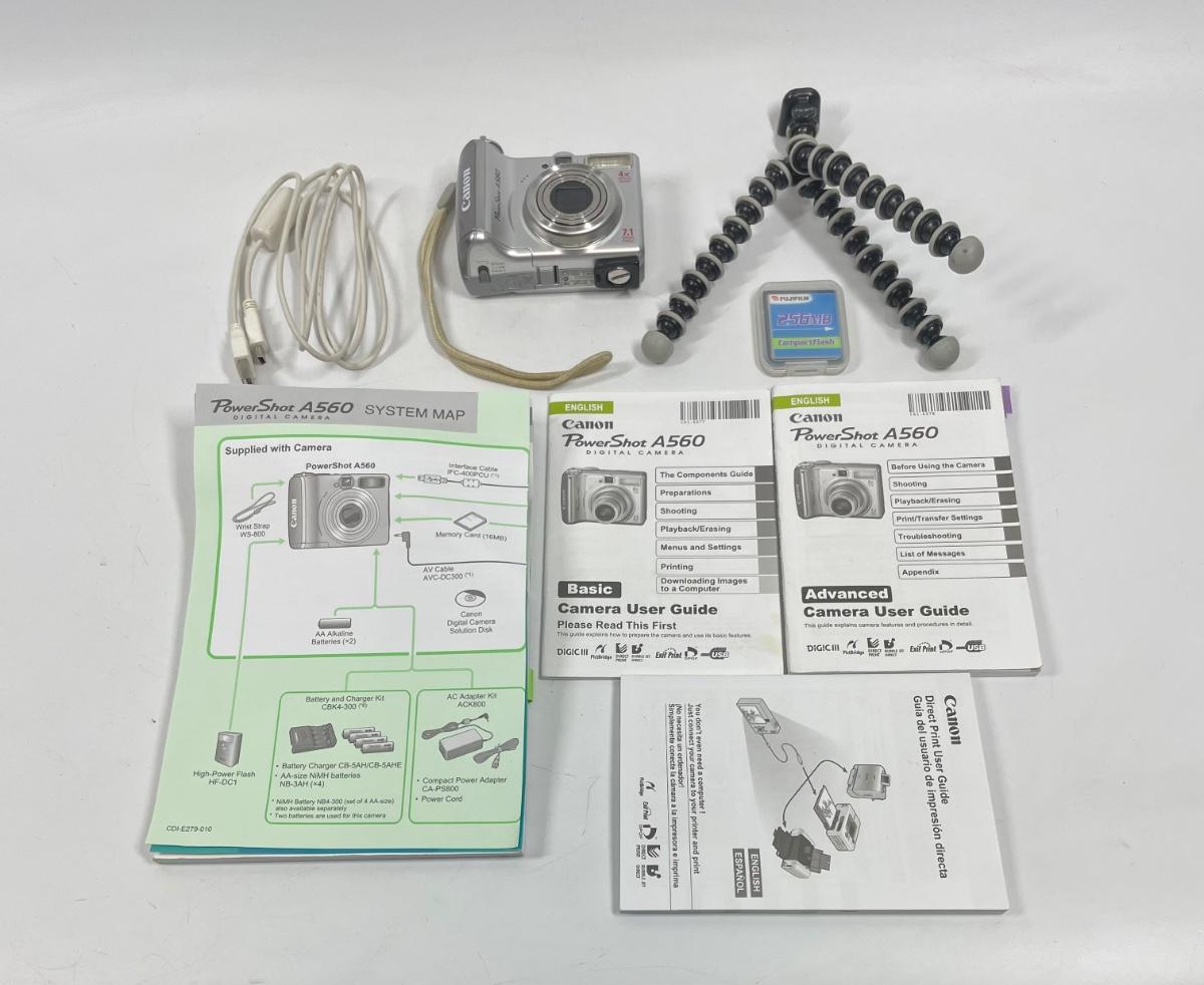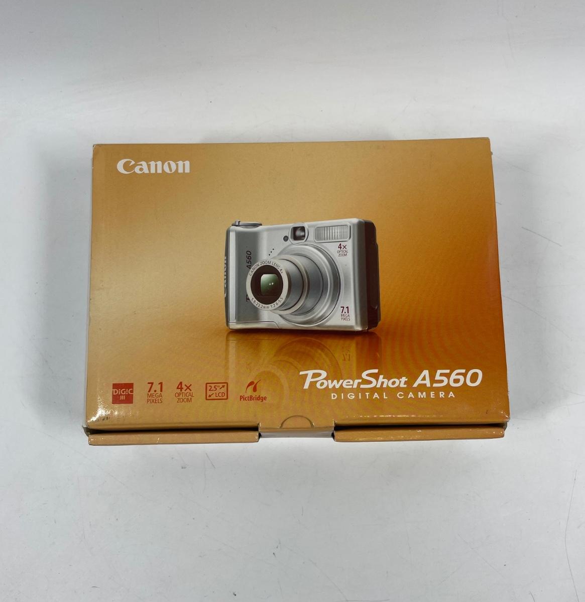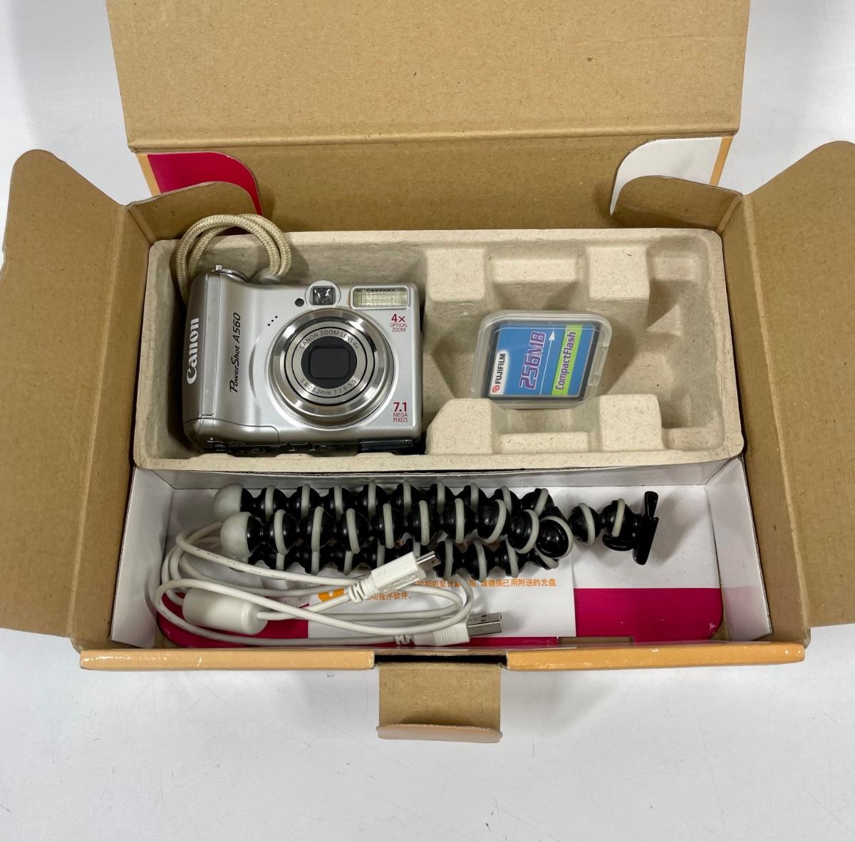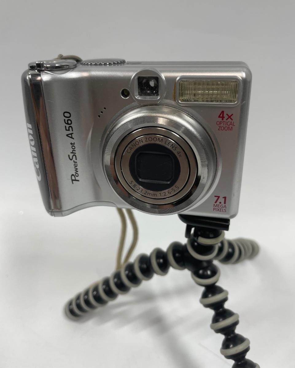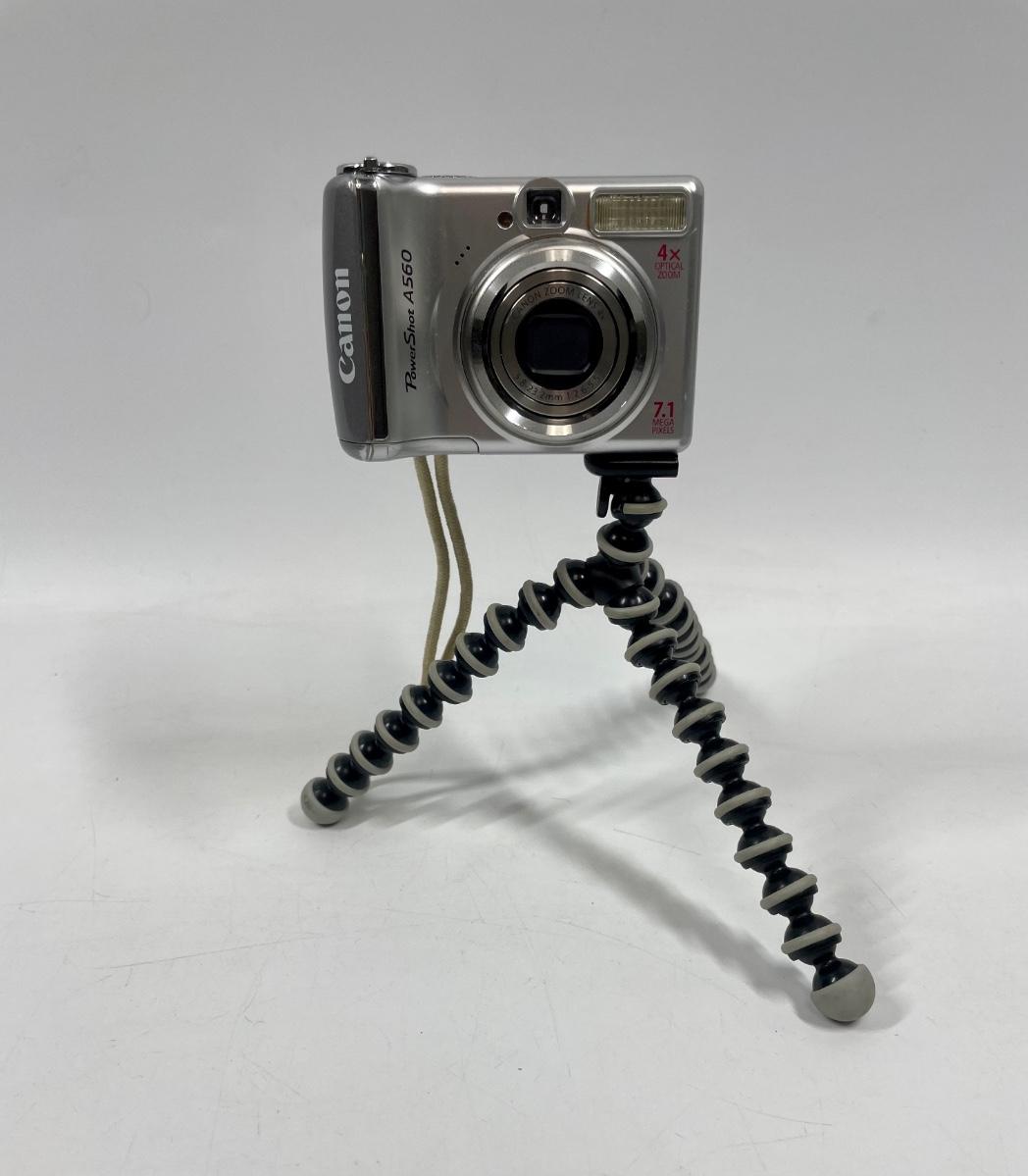 A560 SureShot camera kit, includes strap, computer USB cord, tripod, manuals and original box. Tested, uses 2 AA batteries.