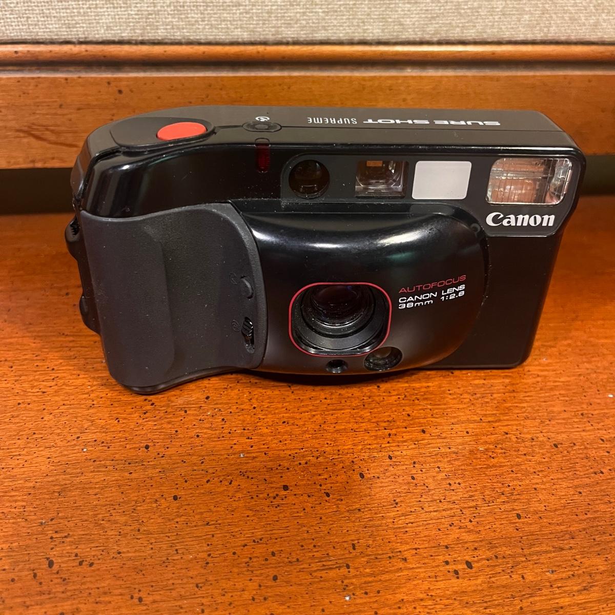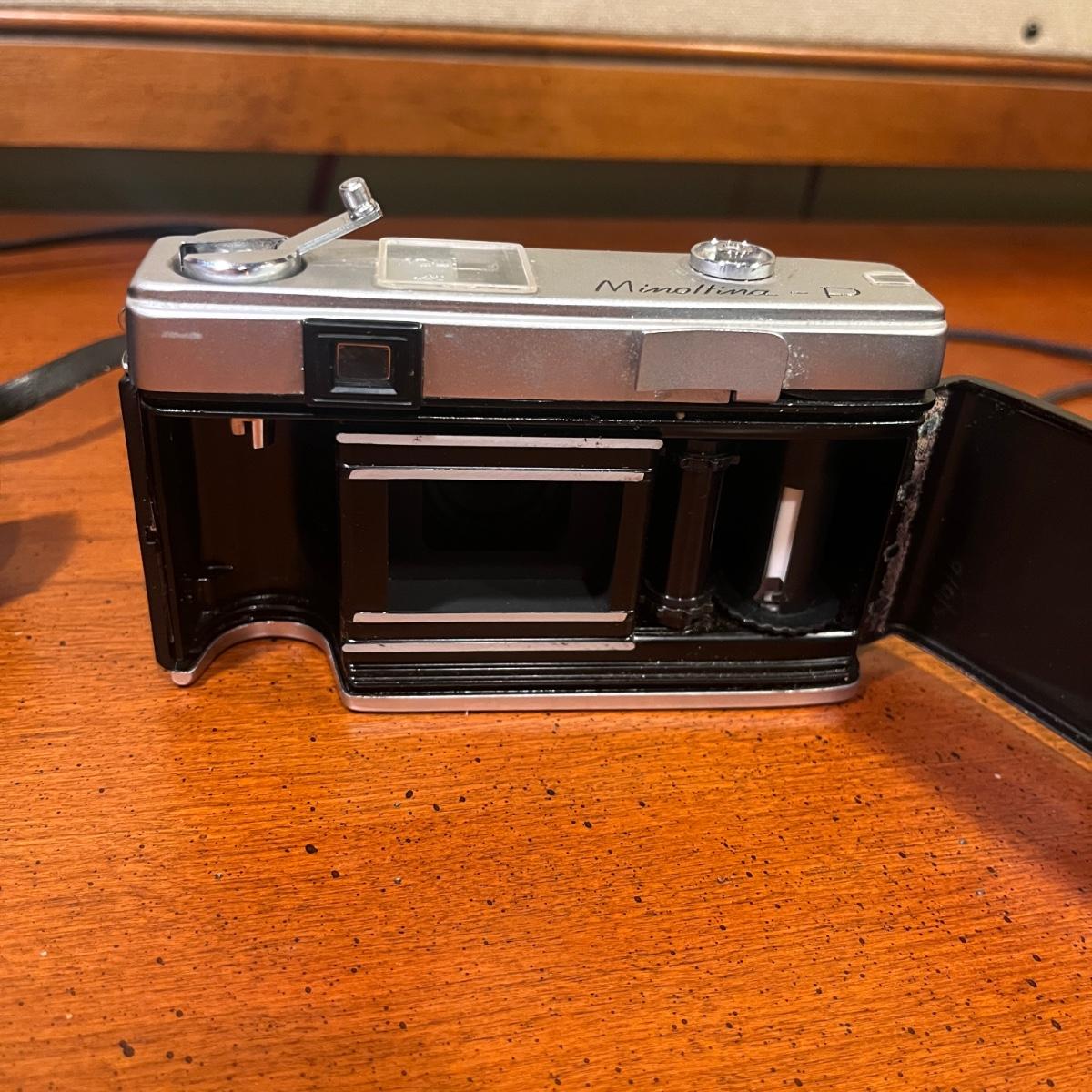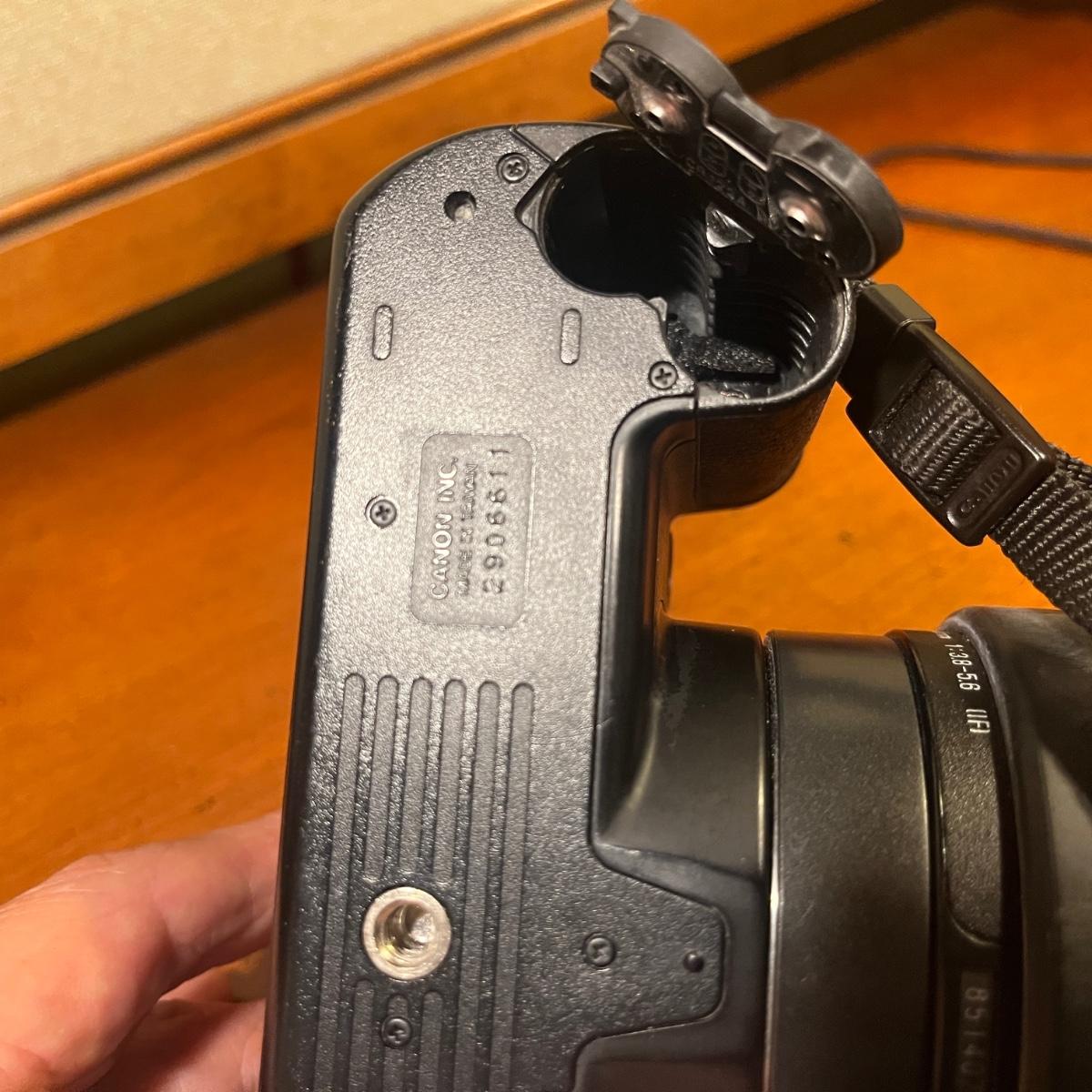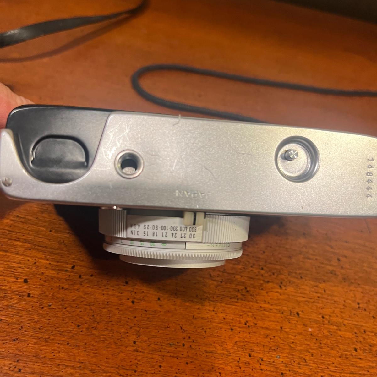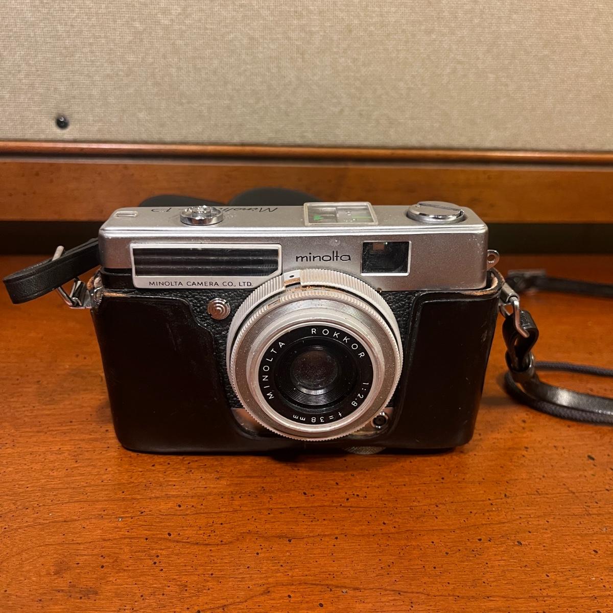 Lot includes a Canon EOS Rebel G 35MM Camera with Tamron 28-200 lense and case. Also includes two Canon Sure Shot 35MM cameras and a Vintage Minolta Minoltina-P 35MM camera. The rubber eye piece is coming up on one side. No cameras were tested.