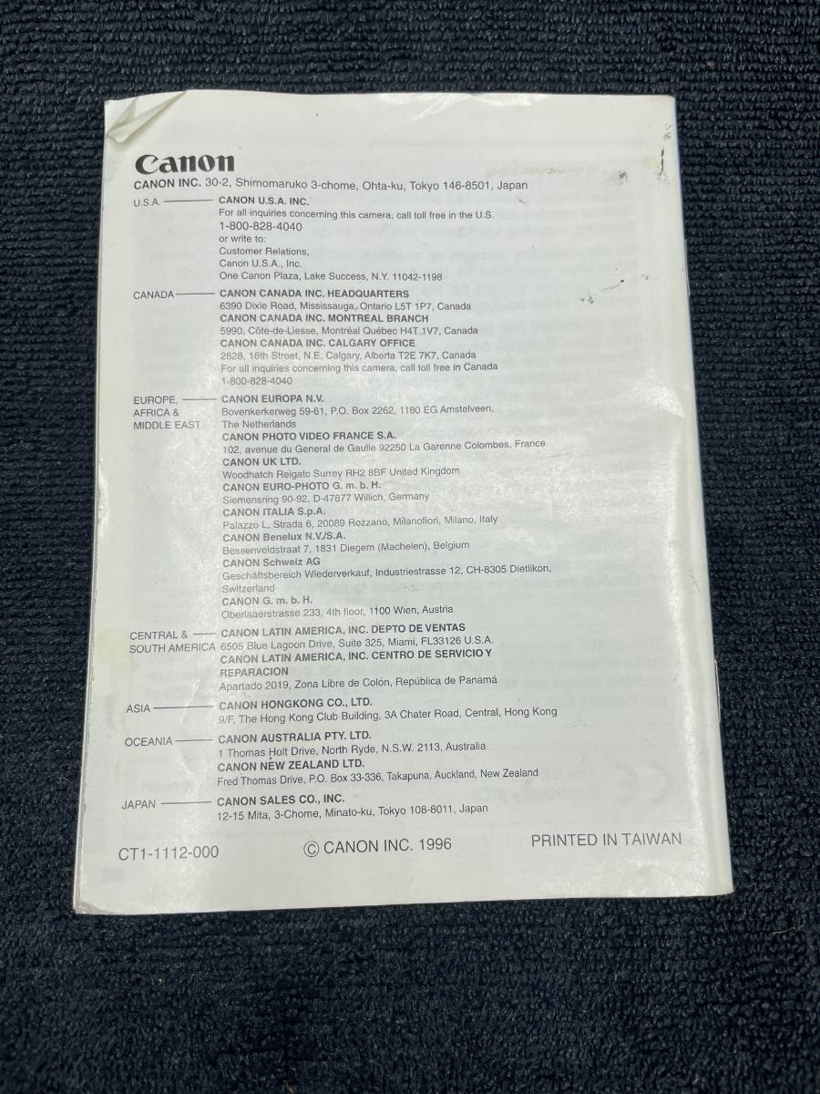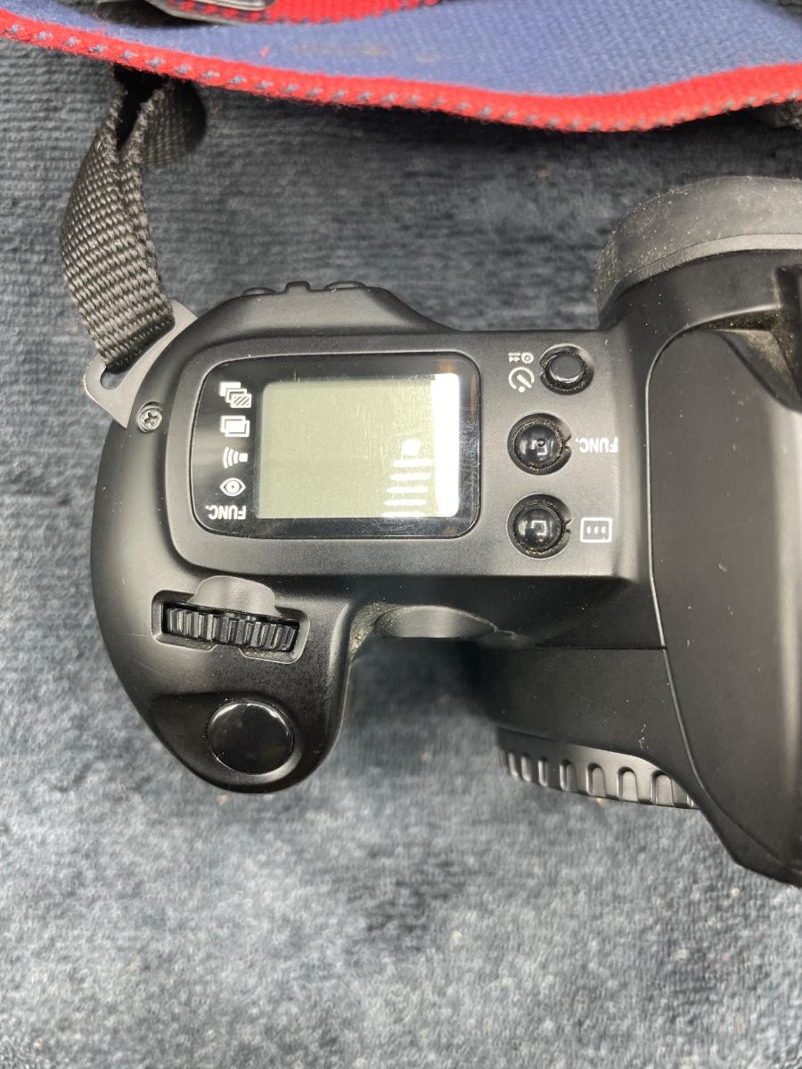 Camera body only, no lens included. Has screw-on dust cover, User Manual and Canon neck strap. Autofocus 35mm Film SLR with full manual options. Enhanced command dial for mode selection, has 11 exposure modes and Canon's exclusive AIM (Advanced Integrated Multipoint) control system. Uses 2 CR123A/DL123A lithium batteries (3v) housed inside the handgrip portion of the body. Retractable built-in flash, improved control of red-eye reduction. Untested, but appears to be in great condition.