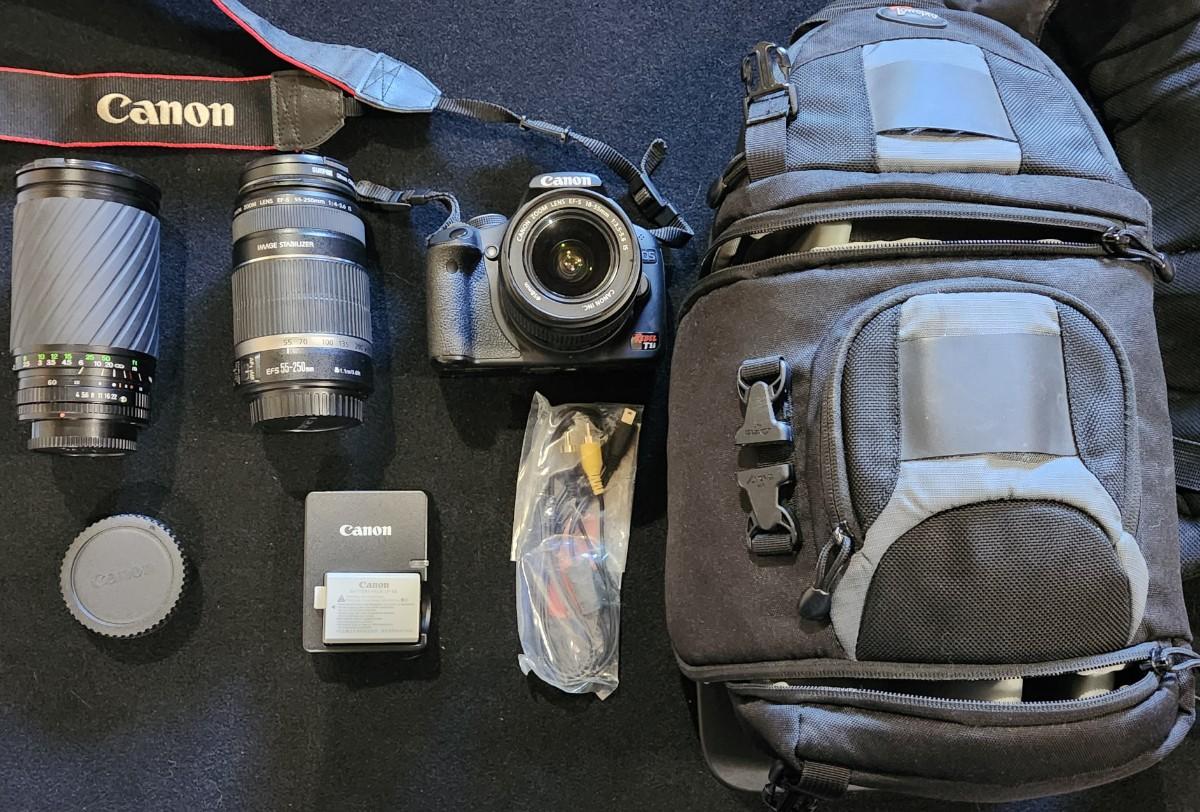 Canon EOS Rebel T1i DSLR Camera w/ EFS IS II 18-55mm & EF-S 55-250mm f/4-5.6 IS Telephoto Zoom plus other lens & Case w/ extra battery
