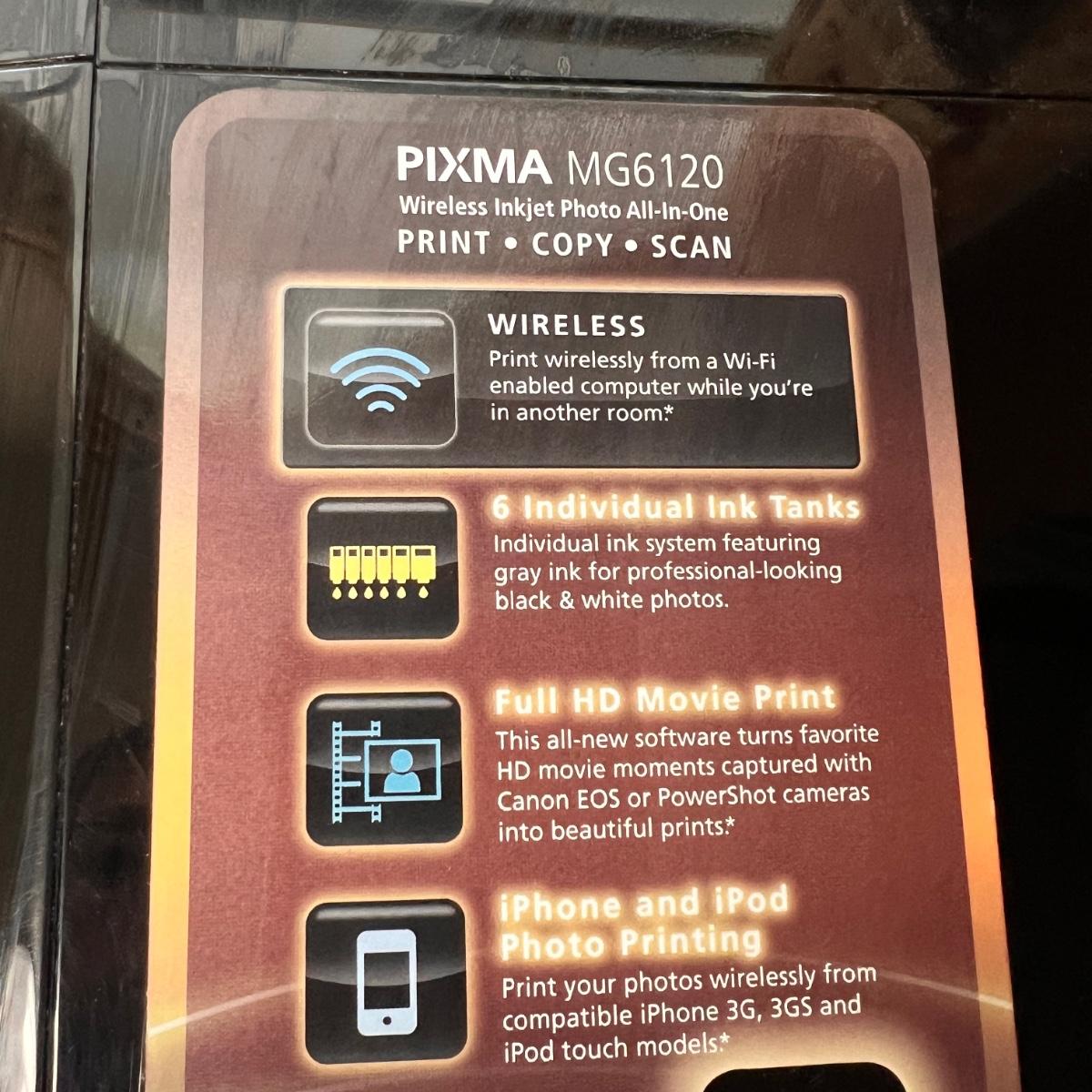"Canon PIXMA MG6120 Wireless Photo All-in-One Printer - multi-functional and provides high performance by taking advantage of its six ink system. The Intelligent Touch System offers an ultra-responsive touch screen with lighted directions and buttons for easy use. You can get ultimate photo print-outs. The Auto Document Fix technology of the Canon PIXMA MG6120 printer provides clear and easy-to-view scans by its advanced image analysis and area-by-area correction. Prints on both sides of the paper."