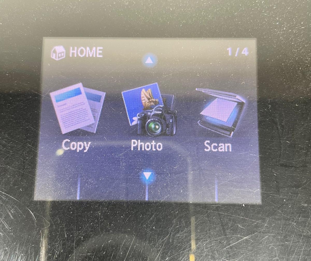 Canon PIXMA MG5320 Wireless Inkjet Photo All-In-One Printer. Near new condition. Includes power cord, printer cable, 5 installed ink cartridges (Canon 226 Black, Magenta, Cyan, Yellow, and 225 Page Black), and 4 new, unopened 226 Black, Yellow, Magenta, and Cyan cartridges. Powered on, Home Screen shows status of printer.