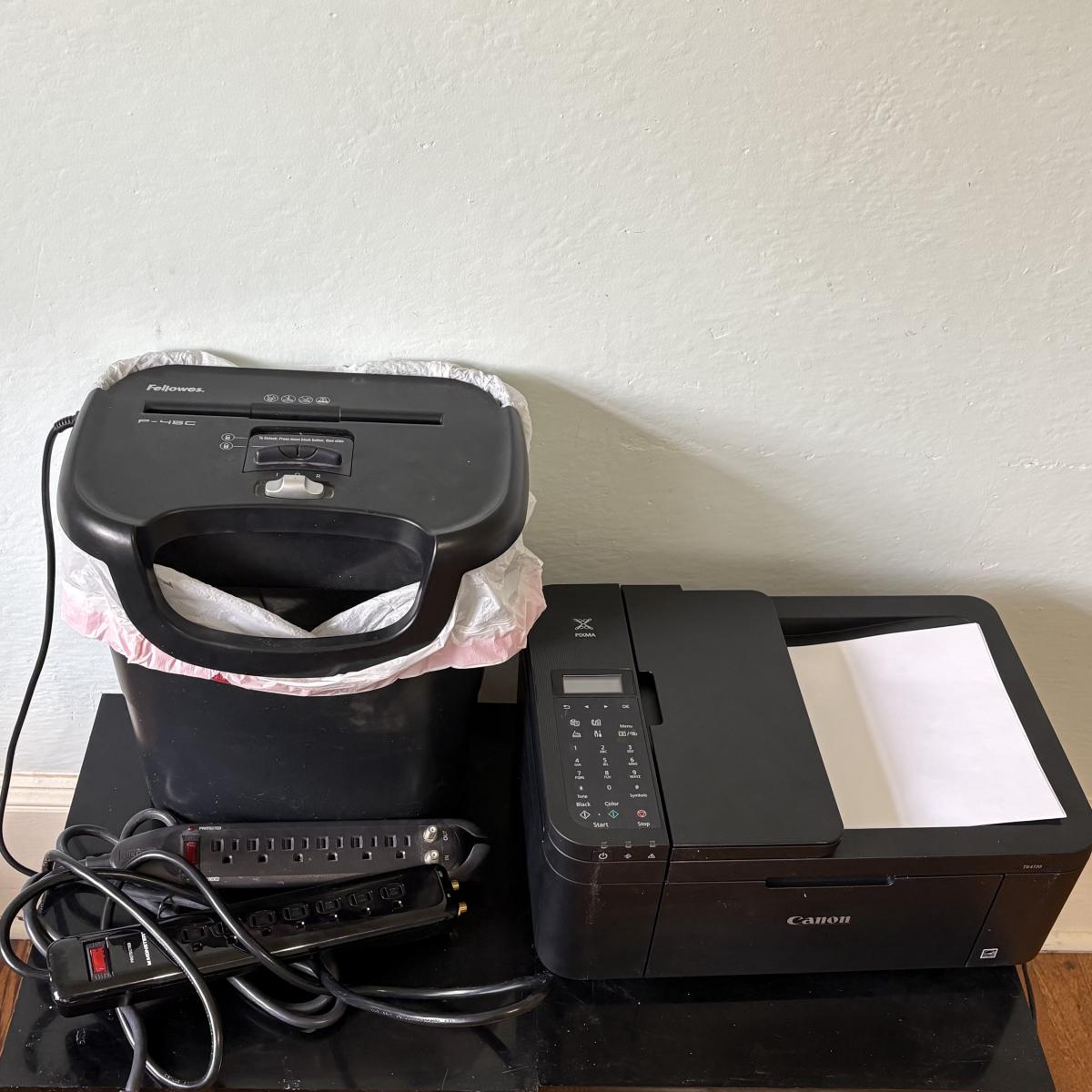 Canon Pixma Printer, Fellowes Paper Shredder, and Power Strips (O-SF)