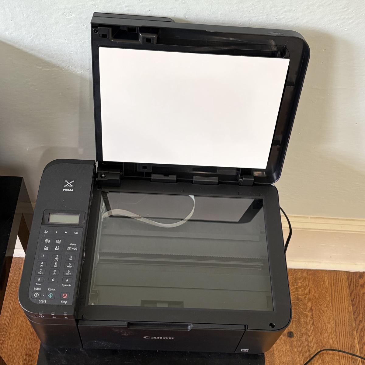 This lot includes a Canon Pixma Printer that is multifunctional, a Fellowes Paper Shredder with a garbage can along with it, and two power strips. All powered on when plugged in. The printer measurements are 17" x 12" x 7"H.