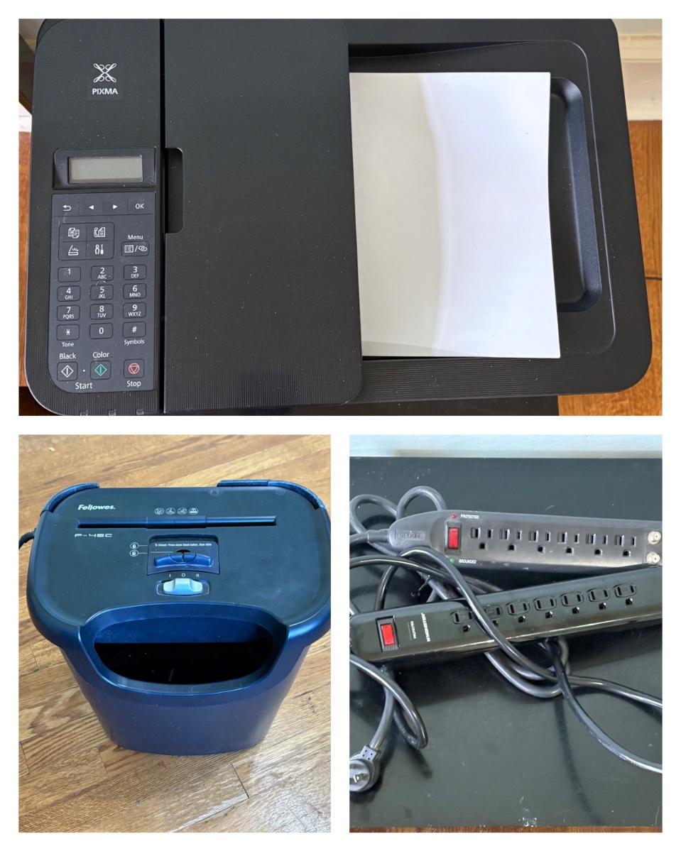 Canon Pixma Printer, Fellowes Paper Shredder, & Power Strips (O-SF)