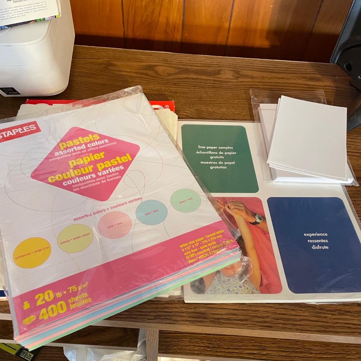 Canon Pixma MG2520 printer with photo quality paper, Logitech Cordless Optical Mouse, two black ink cartridges and colored paper. Lot appears to have more than 200 4” x 6” sized photo paper and pastel colored paper along with a few resume style ivory paper. Printer/Copier turned on when plugged in. See images. Local pick up only.