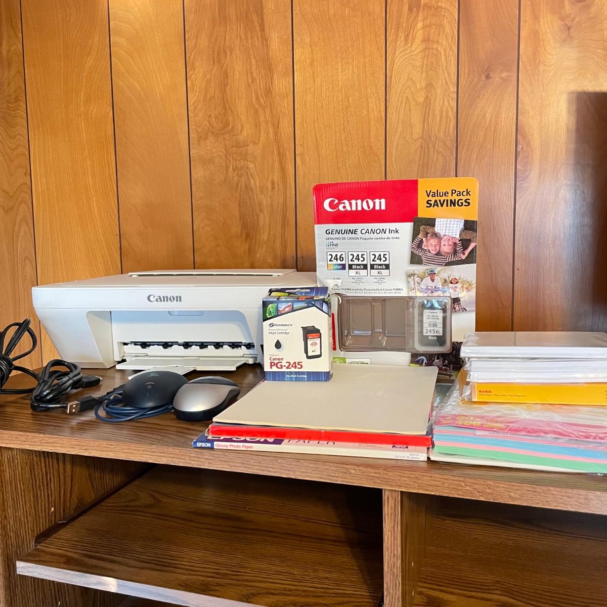 Canon Pixma Printer, Logitech Mouse, Photo Paper & Ink (LR-SS)