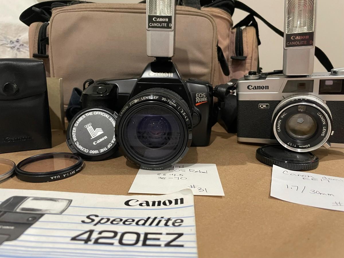 The vast majority of the cameras appear to be in good condition, they were wrapped nicely in cases or stored in dressers. (The cameras and accessories in this collection have not been tested and there is no implied guarantee the items are in working order).