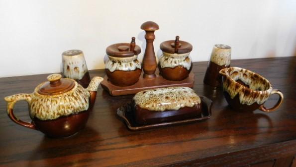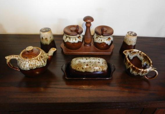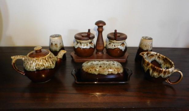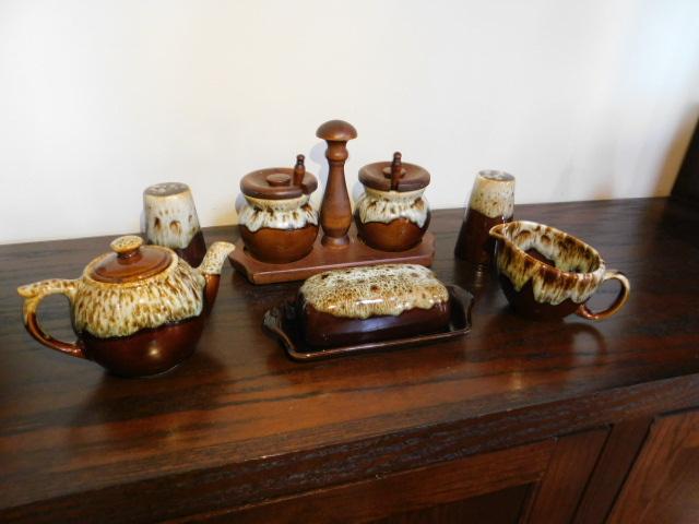 Canonsburg Brown Drip Pottery Serving Set Including Buttern Dish, Salt/Pepper and More This is a nice collection of pottery to all seems to be in very good condition