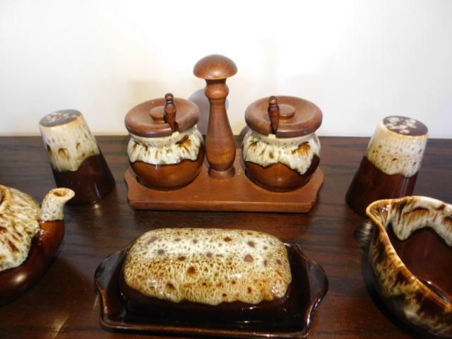 Canonsburg Brown Drip Pottery Serving Set Including Buttern Dish, Salt/Pepper and More
